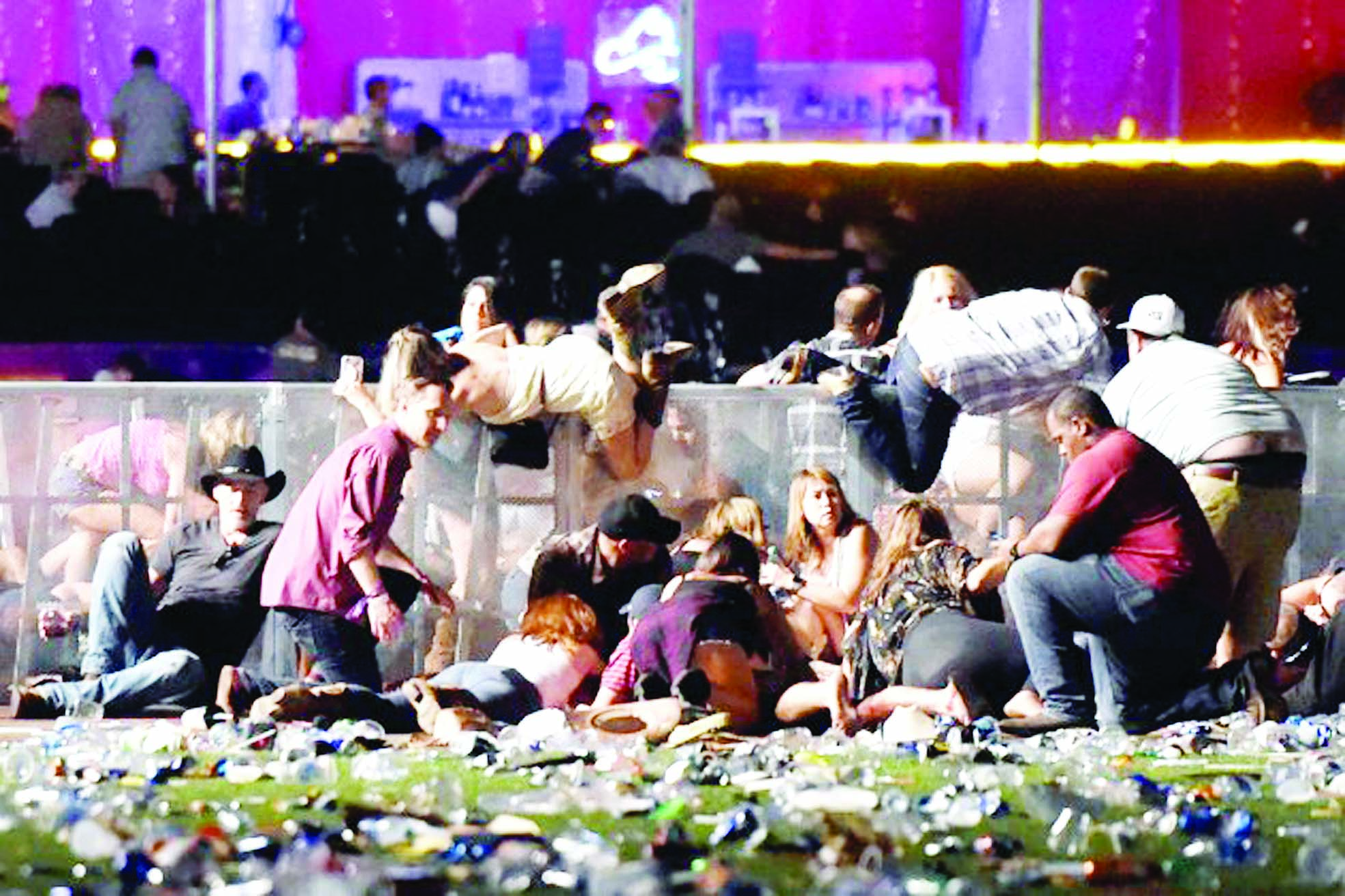 ਪ੍ਰਤੱਖ ਦਰਸ਼ੀਆਂ ਨੇ ਅਪਣੇ ਦਰਦਨਾਕ ਅਨੁਭਵ ਸਾਂਝੇ ਕਰਦਿਆਂ ਦਸਿਆ ਕਿ ਰਿਜ਼ਾਰਟ ਅਤੇ ਕਸੀਨੋ ਵਿਚ ਸੰਗੀਤ ਦਾ ਤਿੰਨ ਦਿਨਾ ਫ਼ੈਸਟੀਵਲ ਚਲ ਰਿਹਾ ਸੀ ਜਿਸ ਦਾ ਸੋਮਵਾਰ ਨੂੰ ਆਖ਼ਰੀ ਦਿਨ ਸੀ। ਸਮਾਗਮ ਵਿਚ ਹਜ਼ਾਰਾਂ ਲੋਕ ਮੌਜੂਦ ਸਨ। ਘਟਨਾ ਸਮੇਂ ਮਸ਼ਹੂਰ ਕਲਾਕਾਰ ਐਰਿਕ ਚਰਚ, ਸੈਮ ਹੰਟ ਅਤੇ ਜੇਸਨ ਅਲਡੀਅਨ ਗਾ ਰਹੇ ਸਨ। ਗੋਲੀਬਾਰੀ ਹੁੰਦਿਆਂ ਹੀ ਚਾਰੇ ਪਾਸੇ ਚੀਕ-ਚਿਹਾੜਾ ਅਤੇ ਭਾਜੜ ਮਚ ਗਈ। ਕੁੱਝ ਹੀ ਦੇਰ ਵਿਚ ਖ਼ੂਨ ਨਾਲ ਲੱਥਪੱਥ ਲਾਸ਼ਾਂ ਇਧਰ-ਉਧਰ ਪਈਆਂ ਸਨ। ਪਹਿਲਾਂ ਤਾਂ ਲੋਕਾਂ ਨੇ ਗੋਲੀਬਾਰੀ ਨੂੰ ਆਤਿਸ਼ਬਾਜ਼ੀ ਸਮਝਿਆ ਪਰ ਜਦ ਸੁਰੱਖਿਆ ਮੁਲਾਜ਼ਮ ਨੂੰ ਗੱਲੀ ਵੱਜੀ ਤਾਂ ਭਾਜੜ ਮਚ ਗਈ। ਕਈ ਕਲਾਕਾਰ ਸੁਰੱਖਿਅਤ ਹਨ। ਆਈਐਸਆਈਐਸ ਨੇ ਲਈ ਜ਼ਿੰਮੇਵਾਰੀ