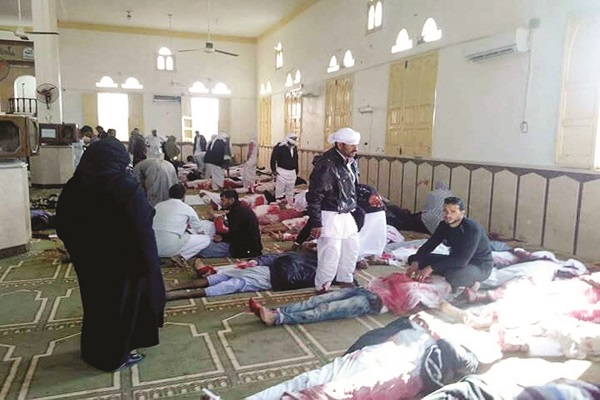 ਕਾਹਿਰਾ, 24 ਨਵੰਬਰ: ਮਿਸਰ ਦੇ ਅਸ਼ਾਂਤ ਉੱਤਰੀ ਸਿਨਾਈ 'ਚ ਅੱਜ ਜੁੰਮੇ ਦੀ ਨਮਾਜ਼ ਦੌਰਾਨ ਇਕ ਮਸਜਿਦ ਉਤੇ ਹੋਏ ਸ਼ੱਕੀ ਅਤਿਵਾਦੀ ਹਮਲੇ 'ਚ ਘੱਟ ਤੋਂ ਘੱਟ 235 ਲੋਕਾਂ ਦੀ ਮੌਤ ਹੋ ਗਈ ਅਤੇ 109 ਹੋਰ ਜ਼ਖ਼ਮੀ ਹੋ ਗਏ।
