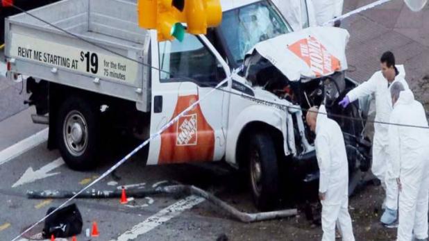 ਵਾਸ਼ਿੰਗਟਨ: ਅਮਰੀਕਾ 'ਚ ਨਿਊਯਾਰਕ ਦੇ ਲੋਅਰ ਮੈਨਹਟਨ 'ਚ ਇੱਕ ਟਰੱਕ ਡਰਾਇਵਰ ਨੇ ਪੈਦਲ ਚੱਲਣ ਵਾਲਿਆਂ ਤੇ ਸਾਇਕਲ ਲੇਨ 'ਚ ਟੱਕਰ ਮਾਰ ਦਿੱਤੀ। ਬਾਅਦ 'ਚ ਉਸ ਸ਼ੱਕੀ ਵਿਅਕਤੀ ਨੇ ਗੱਡੀ 'ਚੋਂ ਉਤਰ ਕੇ ਲੋਕਾਂ 'ਤੇ ਅੰਨ੍ਹੇਵਾਹ ਗੋਲੀਆਂ ਵੀ ਚਲਾਈਆਂ ਜਿਸ ਕਾਰਨ ਇਸ ਹਾਦਸੇ 'ਚ ਕਰੀਬ 8 ਲੋਕਾਂ ਦੀ ਮੌਤ ਹੋ ਗਈ ਤੇ 12 ਤੋਂ ਜ਼ਿਆਦਾ ਲੋਕ ਜ਼ਖਮੀ ਹੋ ਗਏ।