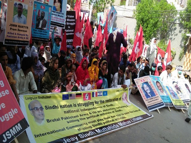 "ਅਸੀਂ ਇੱਥੇ ਪ੍ਰਦਰਸ਼ਨ ਕਰ ਰਹੇ ਹਾਂ ਕਿਉਂਕਿ ਸਿੰਧ ਵਿਚ ਗਾਇਬ ਹੋਣ ਦੀ ਵੱਡੀ ਲਹਿਰ ਹੈ। ਕੋਈ ਵੀ ਐਕਟੀਵਿਸਟ, ਜੋ ਸਿੰਧੀ ਅਧਿਕਾਰਾਂ ਦੀ ਸੁਰੱਖਿਆ ਲਈ ਆਪਣੀ ਆਵਾਜ਼ ਚੁੱਕਦਾ ਹੈ, ਖਤਮ ਹੋ ਜਾਂਦਾ ਹੈ।"