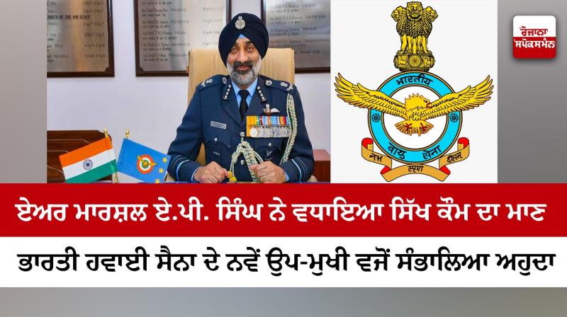 ਨਵੀਂ ਦਿੱਲੀ - ਏਅਰ ਮਾਰਸ਼ਲ ਏ.ਪੀ. ਸਿੰਘ (ਅਮਰ ਪ੍ਰੀਤ ਸਿੰਘ) ਨੇ ਬੁੱਧਵਾਰ ਨੂੰ ਭਾਰਤੀ ਹਵਾਈ ਸੈਨਾ ਦੇ ਨਵੇਂ ਉਪ-ਮੁਖੀ ਵਜੋਂ ਅਹੁਦਾ ਸੰਭਾਲ ਲਿਆ। ਉਨ੍ਹਾਂ ਕੋਲ 5,000 ਘੰਟਿਆਂ ਤੋਂ ਵੱਧ ਉਡਾਣ ਦਾ ਤਜਰਬਾ ਹੈ।