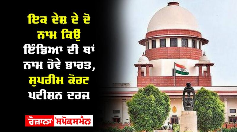 ਸਾਡੇ ਸਵਿਧਾਨ ਵਿਚ ਦੇਸ਼ ਦਾ ਨਾਮ ਇੰਡਿਆ ਤੋਂ ਬਦਲ ਕੇ ਭਾਰਤ ਰੱਖਣ ਦੀ ਮੰਗ ਨੂੰ ਲੈ ਕੇ ਦਾਇਰ ਪਟੀਸ਼ ਤੇ ਅੱਜ ਸੁਪਰੀਮ ਕੋਰਟ ਵਿਚ ਸੁਣਵਾਈ ਨਹੀਂ ਹੋ ਸਕੀ