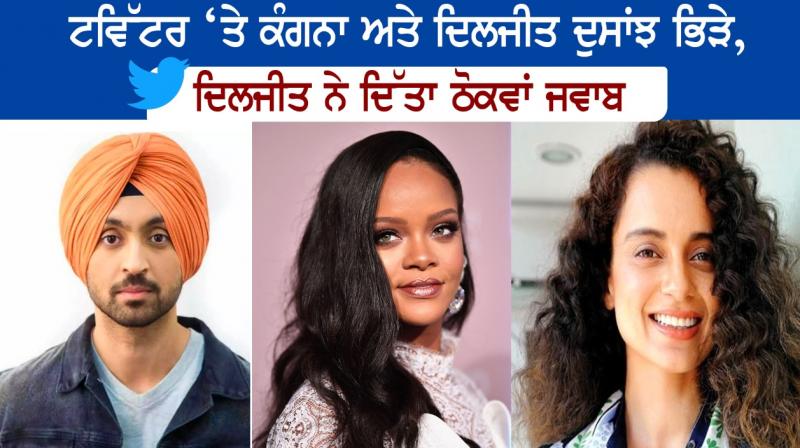 ਚੰਡੀਗੜ੍ਹ : ਨਵੀਂ ਦਿੱਲੀ: ਹਾਲੀਵੁੱਡ ਦੇ ਪੌਪ ਸਟਾਰ ਰਿਹਾਨਾ ਦੇ ਫਾਰਮਰਜ਼ ਪ੍ਰੋਟੈਸਟ ਬਾਰੇ ਟਵੀਟ ਹੋਣ ਤੋਂ ਬਾਅਦ ਤੋਂ ਹੀ ਬਾਲੀਵੁੱਡ ਦੇ ਮਸ਼ਹੂਰ ਲੋਕ ਸੋਸ਼ਲ ਮੀਡੀਆ 'ਤੇ ਲਗਾਤਾਰ ਪ੍ਰਤੀਕ੍ਰਿਆ ਦੇ ਰਹੇ ਹਨ । ਇਕ ਪਾਸੇ ਜਿੱਥੇ ਕੁਝ ਹਸਤੀਆਂ ਰਿਹਾਨਾ ਦਾ ਸਮਰਥਨ ਕਰ ਰਹੀਆਂ ਹਨ,ਉਥੇ ਕੁਝ ਉਨ੍ਹਾਂ ਦੇ ਵਿਰੋਧ ਵਿਚ ਹਨ । ਇਸ ਦੌਰਾਨ ਟਵਿੱਟਰ 'ਤੇ ਇਕ ਵਾਰ ਫਿਰ ਕੰਗਨਾ ਰਣੌਤ ਅਤੇ ਦਿਲਜੀਤ ਦੁਸਾਂਝ ਦੀ ਜੰਗ ਛਿੜ ਗਈ ਹੈ। ਇਸ ਤੋਂ ਪਹਿਲਾਂ ਵੀ ਟਵਿਟਰ 'ਤੇ ਕੰਗਣਾ ਅਤੇ ਦਿਲਜੀਤ 'ਚ ਕਿਸਾਨ ਅੰਦੋਲਨ ਨੂੰ ਲੈ ਕੇ ਕਾਫ਼ੀ ਬਹਿਸ ਹੋਈ ਸੀ। ਅਜਿਹੀ ਸਥਿਤੀ ਵਿੱਚ ਰਿਹਾਨਾ ਦੇ ਇੱਕ ਵਾਰ ਫਿਰ ਟਵੀਟ ਹੋਣ ਤੋਂ ਬਾਅਦ ਦੋਵਾਂ ਵਿੱਚ ਬਹਿਸ ਸ਼ੁਰੂ ਹੋ ਗਈ ਹੈ।