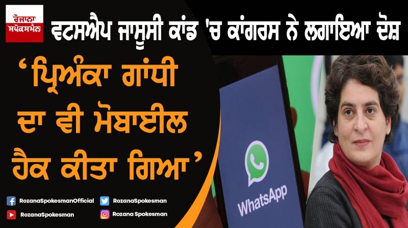 ਨਵੀਂ ਦਿੱਲੀ : ਵਟਸਐਪ ਜਾਸੂਸੀ ਕਾਂਡ 'ਚ ਕਾਂਗਰਸ ਨੇ ਵੱਡਾ ਦਾਅਵਾ ਕੀਤਾ ਹੈ। ਕਾਂਗਰਸ ਵਲੋਂ ਕੇਂਦਰ ਸਰਕਾਰ 'ਤੇ ਦੋਸ਼ ਲਗਾਇਆ ਗਿਆ ਹੈ ਕਿ ਪਾਰਟੀ ਜਨਰਲ ਸਕੱਤਰ ਪ੍ਰਿਅੰਕਾ ਗਾਂਧੀ ਦਾ ਵੀ ਫ਼ੋਨ ਹੈਕ ਕੀਤਾ ਗਿਆ। ਕਾਂਗਰਸ ਦੇ ਬੁਲਾਰੇ ਰਣਦੀਪ ਸੁਰਜੇਵਾਲਾ ਨੇ ਕਿਹਾ ਕਿ ਪ੍ਰਿਅੰਕਾ ਗਾਂਧੀ ਨੂੰ ਵੀ ਫ਼ੋਨ ਹੈਕ ਕਰਨ ਵਾਲਾ ਮੈਸੇਜ਼ ਆਇਆ ਸੀ। ਉਨ੍ਹਾਂ ਕਿਹਾ ਕਿ ਸਰਕਾਰ ਇਸ ਜਾਸੂਸੀ ਮਾਮਲੇ ਦੀ ਜਾਂਚ ਕਰਵਾਏ। ਜ਼ਿਕਰਯੋਗ ਹੈ ਕਿ ਇਸ ਤੋਂ ਪਹਿਲਾਂ ਪੱਛਮ ਬੰਗਾਲ ਦੀ ਮੁੱਖ ਮੰਤਰੀ ਮਮਤਾ ਬੈਨਰਜ਼ੀ ਨੇ ਵੀ ਫ਼ੋਨ ਹੈਕਿੰਗ ਦਾ ਦੋਸ਼ ਲਗਾਉਂਦਿਆਂ ਕਿਹਾ ਸੀ ਕਿ ਕੇਂਦਰ ਸਰਕਾਰ ਦੇ ਇਸ਼ਾਰੇ 'ਤੇ ਉਨ੍ਹਾਂ ਦਾ ਫ਼ੋਨ ਟੈਪ ਕੀਤਾ ਗਿਆ ਸੀ।