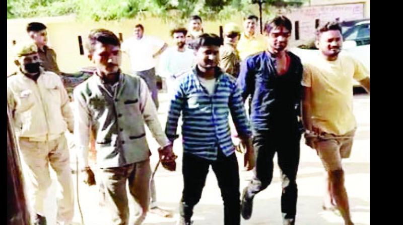 ਮਥੁਰਾ: ਮਥੁਰਾ ਦੇ ਨੰਦਬਾਬਾ ਮੰਦਰ ਵਿਖੇ 29 ਅਕਤੂਬਰ ਨੂੰ 2 ਮੁਸਲਮਾਨਾਂ ਦੇ ਨਮਾਜ ਪੜ੍ਹਣ ਦੇ ਵਿਰੋਧ ਵਿਚ ਬਰਸਾਨਾ ਰੋਡ ਦੀ ਮਸਜਿਦ ਵਿਚ 3 ਨੌਜਵਾਨਾਂ ਨੇ ਹਨੂਮਾਨ ਚਾਲੀਸਾ ਦਾ ਪਾਠ ਕੀਤਾ ਅਤੇ ਜੈ ਸ਼੍ਰੀਰਾਮ ਦੇ ਨਾਹਰੇ ਵੀ ਲਾਏ। ਮਾਮਲਾ ਸੋਸ਼ਲ ਮੀਡੀਆ ਉੱਤੇ ਆਉਂਦੇ ਹੀ ਪੁਲਿਸ ਤੁਰਤ ਕਾਰਵਾਈ ਕਰਦਿਆਂ ਚਾਰਾਂ ਨੂੰ ਗ੍ਰਿਫ਼ਤਾਰ ਕਰ ਲਿਆ।