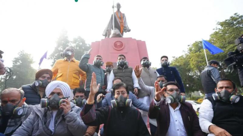 ਆਮ ਆਦਮੀ ਪਾਰਟੀ ਦੇ ਵਿਧਾਇਕਾਂ ਨੇ ਸ਼ਹਿਰ ਵਿਚ ਹਵਾ ਪ੍ਰਦੂਸ਼ਣ ਦੇ ਵਿਰੋਧ ਵਿਚ ਵਿਰੋਧ ਪ੍ਰਦਰਸ਼ਨ ਕੀਤਾ