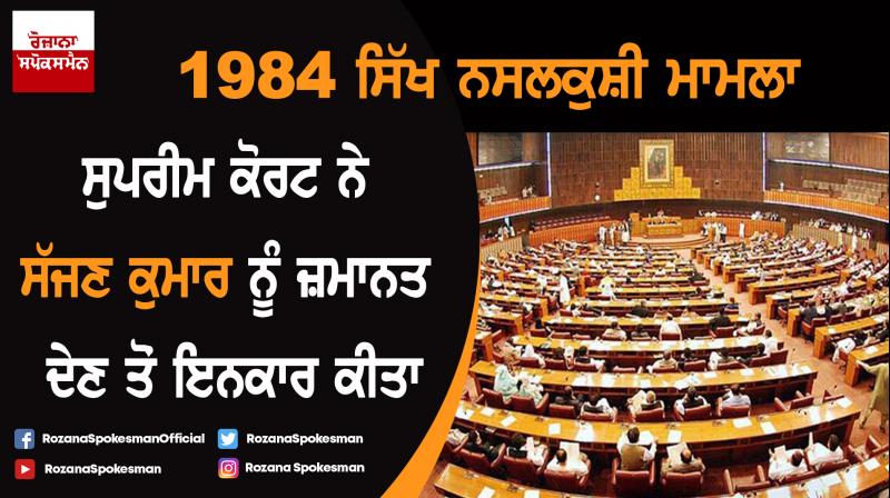 ਨਵੀਂ ਦਿੱਲੀ : ਸੁਪਰੀਮ ਕੋਰਟ ਨੇ ਸੋਮਵਾਰ ਨੂੰ ਕਿਹਾ ਕਿ 1984 ਦੇ ਸਿੱਖ ਨਸਲਕੁਸ਼ੀ ਨਾਲ ਸਬੰਧਤ ਮਾਮਲੇ ਆਮ ਨਹੀਂ ਹਨ ਅਤੇ ਕਾਂਗਰਸ ਦੇ ਸਾਬਕਾ ਆਗੂ ਸੱਜਣ ਕੁਮਾਰ ਦੇ ਮਾਮਲੇ 'ਚ ਸੁਣਵਾਈ ਤੋਂ ਬਗੈਰ ਉਸ ਦੀ ਉਮਰ ਕੈਦ ਦੀ ਸਜ਼ਾ ਨੂੰ ਰੱਦ ਕਰਨ ਲਈ ਕੋਈ ਆਦੇਸ਼ ਦੇਣਾ ਬਹੁਤ ਮੁਸ਼ਕਲ ਹੈ। ਸੁਪਰੀਮ ਕੋਰਟ ਨੇ ਕਿਹਾ ਕਿ ਸੱਜਣ ਕੁਮਾਰ ਦੀ ਅਪੀਲ 'ਤੇ ਅਗਲੇ ਸਾਲ ਮਈ ਮਹੀਨੇ 'ਚ ਗਰਮੀਆਂ ਦੀਆਂ ਛੁੱਟੀਆਂ ਦੌਰਾਨ ਸਪੈਸ਼ਲ ਬੈਂਚ ਸੁਣਵਾਈ ਕਰੇਗੀ।