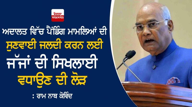 ਪ੍ਰੋਗਰਾਮ ਵਿਚ ਸੰਬੋਧਨ ਦੌਰਾਨ ਰਾਸ਼ਟਰਪਤੀ ਰਾਮਨਾਥ ਕੋਵਿੰਦ ਨੇ ਕਿਹਾ ਕਿ ਅਦਾਲਤ ਵਿੱਚ ਵਿਚਾਰ ਅਧੀਨ ਪੈਂਡਿੰਗ ਮਾਮਲਿਆਂ ਦੀ ਸੁਣਵਾਈ ਜਲਦੀ ਕਰਨ ਲਈ ਜੱਜਾਂ ਦੀ ਸਿਖਲਾਈ ਨੂੰ ਵਧਾਉਣ ਦੀ ਲੋੜ ਹੈ। ਇਸ ਤੋਂ ਇਲਾਵਾ ਨਿਆਇਕ ਅਤੇ ਅਰਧ-ਨਿਆਂਇਕ ਅਧਿਕਾਰੀਆਂ ਦੀ ਸਿਖਲਾਈ ਵੀ ਜ਼ਰੂਰੀ ਹੈ। ਇਹ ਇਸ ਲਈ ਹੈ ਕਿ ਲੰਬਿਤ ਪਏ ਕੇਸਾਂ ਦੇ ਨਤੀਜੇ ਜਲਦੀ ਆਉਂਦੇ ਹਨ ਤਾਂ ਲੋਕਾਂ ਨੂੰ ਜਲਦੀ ਇਨਸਾਫ ਮਿਲੇਗਾ। ਰਾਸ਼ਟਰਪਤੀ ਕੋਵਿੰਦ ਨੇ ਕਿਹਾ ਕਿ ਜ਼ਿਲ੍ਹਾ ਅਦਾਲਤ ਵਿਚ ਇਸ ਦੀ ਵਿਸ਼ੇਸ਼ ਤੌਰ ’ਤੇ ਲੋੜ ਹੈ।