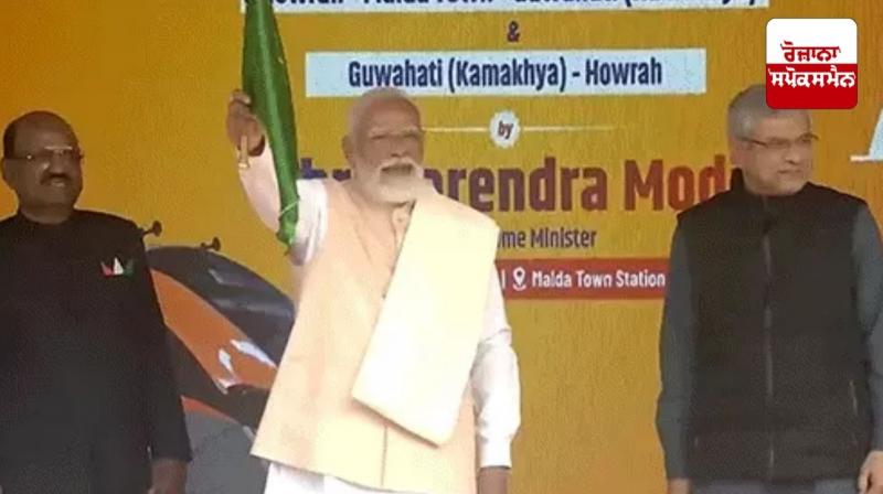 ਕੋਲਕਾਤ : ਪੱਛਮੀ ਬੰਗਾਲ ਦੇ ਮਾਲਦਾ ਵਿੱਚ ਸ਼ਨੀਵਾਰ ਨੂੰ ਪ੍ਰਧਾਨ ਮੰਤਰੀ ਮੋਦੀ ਨੇ ਭਾਰਤ ਦੀ ਪਹਿਲੀ ਵੰਦੇ ਭਾਰਤ ਸਲੀਪਰ ਰੇਲ ਗੱਡੀ ਦਾ ਉਦਘਾਟਨ ਕੀਤਾ। ਉਨ੍ਹਾਂ ਨੇ ਰੇਲ ਗੱਡੀ ਨੂੰ ਹਰੀ ਝੰਡੀ ਦਿਖਾ ਕੇ ਰਵਾਨਾ ਕੀਤਾ। ਇਹ ਰੇਲ ਗੱਡੀ ਹਾਵੜਾ ਤੋਂ ਗੁਹਾਟੀ ਦਰਮਿਆਨ ਚੱਲੇਗੀ। ਇਸ ਮੌਕੇ ਪ੍ਰਧਾਨ ਮੰਤਰੀ ਮੋਦੀ ਨੇ ਰੇਲ ਗੱਡੀ ਦੇ ਡਰਾਈਵਰ ਨਾਲ ਮੁਲਾਕਾਤ ਕੀਤੀ ਅਤੇ ਉਸ ਬਾਰੇ ਜਾਣਕਾਰੀ ਹਾਸਲ ਕੀਤੀ । ਉਨ੍ਹਾਂ ਰੇਲ ਗੱਡੀ ਵਿੱਚ ਮੌਜੂਦ ਬੱਚਿਆਂ ਨਾਲ ਵੀ ਗੱਲਬਾਤ ਕੀਤੀ।