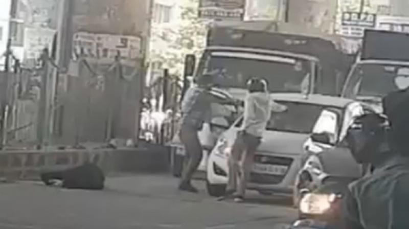 ਨਵੀਂ ਦਿੱਲੀ- ਤਸਵੀਰਾਂ ਦਿੱਲੀ ਦੇ ਦੁਆਰਕਾ ਮੋੜ ਮੈਟਰੋ ਸਟੇਸ਼ਨ ਦੇ ਨੇੜੇ ਦੀਆਂ ਹਨ। ਜਿੱਥੇ ਦਿੱਲੀ ਪੁਲਿਸ ਅਤੇ ਗੈਂਗਸਟਰਾਂ ਵਿਚਕਾਰ ਮੁਠਭੇੜ ਹੋ ਗਈ ਇਸ ਦੌਰਾਨ ਪੁਲਿਸ ਨੇ ਸੜਕ ਵਿਚਕਾਰ ਹੀ ਦੋ ਗੈਂਗਸਟਰਾਂ ਨੂੰ ਗੋਲੀਆਂ ਮਾਰ ਕੇ ਮੌਤ ਦੇ ਘਾਟ ਉਤਾਰ ਦਿੱਤਾ। ਜਿਸ ਤੋਂ ਰੋਡ ਤੋਂ ਲੰਘਣ ਵਾਲੇ ਰਾਹਗੀਰਾਂ ਵਿਚ ਹਫੜਾ ਦਫ਼ੜੀ ਮਚ ਗਈ। ਦਰਅਸਲ ਪੁਲਿਸ ਇਨ੍ਹਾਂ ਗੈਂਗਸਟਰਾਂ ਦਾ ਪਿੱਛਾ ਕਰ ਰਹੀ ਸੀ ਜਦੋਂ ਪੁਲਿਸ ਨੇ ਇਨ੍ਹਾਂ ਨੂੰ ਲਲਕਾਰਿਆ ਤਾਂ ਗੈਂਗਸਟਰਾਂ ਨੇ ਪੁਲਿਸ 'ਤੇ ਫਾਈਰਿੰਗ ਕਰ ਦਿਤੀ।