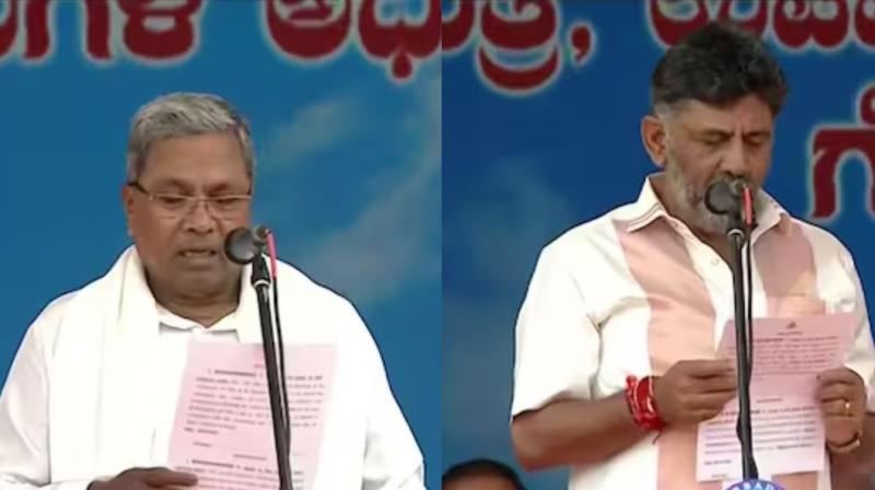 ਬੰਗਲੌਰ: ਕਾਂਗਰਸ ਦੇ ਸੀਨੀਅਰ ਨੇਤਾ ਸਿੱਧਰਮਈਆ ਨੇ ਸ਼ਨਿਚਰਵਾਰ ਨੂੰ ਕਰਨਾਟਕ ਦੇ ਮੁੱਖ ਮੰਤਰੀ ਵਜੋਂ ਸਹੁੰ ਚੁਕੀ। ਉਨ੍ਹਾਂ ਦੇ ਨਾਲ ਪ੍ਰਦੇਸ਼ ਕਾਂਗਰਸ ਕਮੇਟੀ ਦੇ ਪ੍ਰਧਾਨ ਡੀਕੇ ਸ਼ਿਵਕੁਮਾਰ ਨੇ ਵੀ ਸੂਬੇ ਦੇ ਉਪ ਮੁੱਖ ਮੰਤਰੀ ਵਜੋਂ ਹਲਫ਼ ਲਿਆ। ਰਾਜਪਾਲ ਥਾਵਰਚੰਦ ਗਹਿਲੋਤ ਨੇ ਸਥਾਨਕ ਸ੍ਰੀ ਕਾਂਤੀਰਵਾ ਸਟੇਡੀਅਮ ਵਿਚ ਹੋਏ ਸਹੁੰ ਚੁੱਕ ਸਮਾਗਮ ਵਿਚ ਸਿੱਧਰਮਈਆ ਅਤੇ ਸ਼ਿਵਕੁਮਾਰ ਨੂੰ ਅਹੁਦੇ ਅਤੇ ਗੁਪਤਤਾ ਦੀ ਸਹੁੰ ਚੁਕਾਈ।