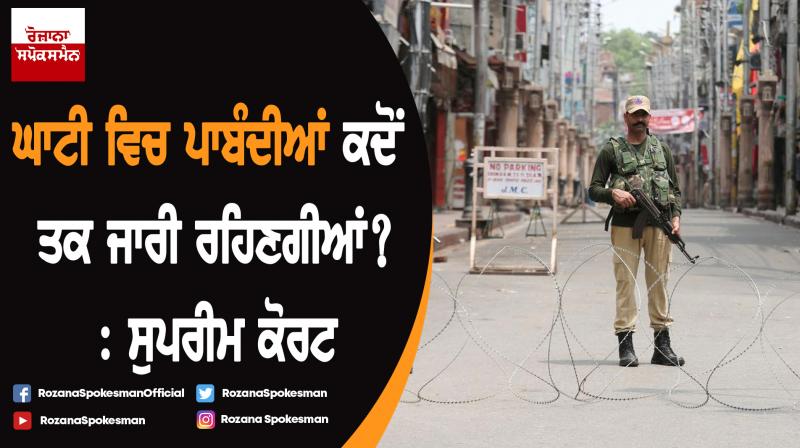 ਅਦਾਲਤ ਨੇ ਜੰਮੂ ਕਸ਼ਮੀਰ ਪ੍ਰਸ਼ਾਸਨ ਨੂੰ ਸਵਾਲ ਕੀਤਾ ਕਿ ਘਾਟੀ ਵਿਚ ਇੰਟਰਨੈਟ ਸੇਵਾ ਬੰਦ ਕਰਨ ਸਮੇਤ ਹੋਰ ਪਾਬੰਦੀਆਂ ਕਦੋਂ ਤਕ ਲਾਗੂ ਰੱਖਣ ਦਾ ਇਰਾਦਾ ਹੈ? ਜੱਜ ਐਨ ਵੀ ਰਮਨ, ਜੱਜ ਆਰ ਸੁਭਾਸ਼ ਰੈਡੀ ਅਤੇ ਜੱਜ ਬੀ ਆਰ ਗਵਈ ਦੇ ਬੈਂਚ ਨੇ ਕੇਂਦਰ ਅਤੇ ਜੰਮੂ ਕਸ਼ਮੀਰ ਪ੍ਰਸ਼ਾਸਨ ਨੂੰ ਕਿਹਾ ਕਿ ਸਪੱਸ਼ਟ ਜਵਾਬ ਨਾਲ ਆਉ ਅਤੇ ਇਸ ਮੁੱਦੇ ਨਾਲ ਸਿੱਝਣ ਦੇ ਦੂਜੇ ਤਰੀਕੇ ਲੱਭੋ। ਕਸ਼ਮੀਰ ਟਾਇਮਜ਼ ਦੀ ਕਾਰਜਕਾਰੀ ਸੰਪਾਦਕ ਅਨੁਰਾਧਾ ਭਸੀਨ ਦੇ ਵਕੀਲ ਨੇ ਕਿਹਾ ਕਿ ਘਾਟੀ ਵਿਚ ਦੋ ਮਹੀਨਿਆਂ ਤੋਂ ਵੱਧ ਸਮੇਂ ਤੋਂ ਇੰਟਰਨੈਟ ਸੇਵਾ ਬੰਦ ਹੈ।