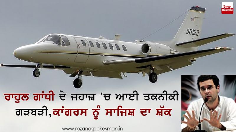 ਨਵੀਂ ਦਿੱਲੀ : ਕਾਂਗਰਸ ਪ੍ਰਧਾਨ ਰਾਹੁਲ ਗਾਂਧੀ ਦੇ ਜਹਾਜ਼ ਵਿਚ ਤਕਨੀਕੀ ਖ਼ਰਾਬੀ ਆ ਗਈ, ਜਿਸ ਕਾਰਨ ਉਨ੍ਹਾਂ ਦਾ ਜਹਾਜ਼ ਉੱਤਰੀ ਕਰਨਾਟਕ ਦੇ ਹੁਬਲੀ ਹਵਾਈ ਅੱਡੇ 'ਤੇ ਉਤਾਰਨਾ ਪਿਆ। ਇਹ ਘਟਨਾ ਉਸ ਸਮੇਂ ਵਾਪਰੀ ਜਦੋਂ ਰਾਹੁਲ ਗਾਂਧੀ ਅਪਣੇ ਕੁੱਝ ਸਹਿਯੋਗੀਆਂ ਦੇ ਨਾਲ ਦਿੱਲੀ ਤੋਂ ਕਰਨਾਟਕ ਦੇ ਰਸਤੇ ਵਿਚ ਸਨ। ਕਾਂਗਰਸ ਨੇ ਇਸ ਘਟਨਾ ਦੇ ਪਿੱਛੇ ਕਿਸੇ ਸਾਜਿਸ਼ ਦਾ ਸ਼ੱਕ ਪ੍ਰਗਟਾਇਆ ਹੈ। ਕਾਂਗਰਸ ਪਾਰਟੀ ਨੇ ਇਸ ਮਾਮਲੇ ਦੀ ਜਾਂਚ ਕਰਵਾਏ ਜਾਣ ਦੀ ਮੰਗ ਕੀਤੀ ਹੈ।