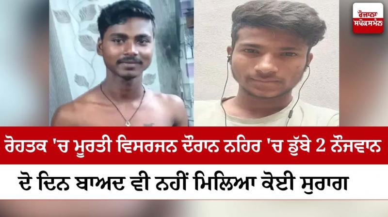 ਰੋਹਤਕ: ਹਰਿਆਣਾ ਦੇ ਰੋਹਤਕ ਵਿੱਚੋਂ ਲੰਘਦੀ ਜੇਐਲਐਨ ਨਹਿਰ ਵਿੱਚ ਸਰਸਵਤੀ ਮੂਰਤੀ ਵਿਸਰਜਨ ਦੌਰਾਨ ਦੋ ਨੌਜਵਾਨ ਰੁੜ੍ਹ ਗਏ। ਜਿਹਨਾਂ ਦਾ ਦੋ ਦਿਨ ਬੀਤ ਜਾਣ ਤੋਂ ਬਾਅਦ ਵੀ ਕੋਈ ਸੁਰਾਗ ਨਹੀਂ ਮਿਲਿਆ ਹੈ। ਇਸ ਦੇ ਨਾਲ ਹੀ ਪਰਿਵਾਰਕ ਮੈਂਬਰਾਂ ਨੇ ਪੁਲਿਸ 'ਤੇ ਅਣਦੇਖੀ ਕਰਨ ਅਤੇ ਮਦਦ ਨਾ ਕਰਨ ਦੇ ਦੋਸ਼ ਵੀ ਲਗਾਏ। ਪਰਿਵਾਰ ਵਾਲੇ ਹੀ ਨੌਜਵਾਨ ਦੀ ਭਾਲ ਕਰ ਰਹੇ ਹਨ।