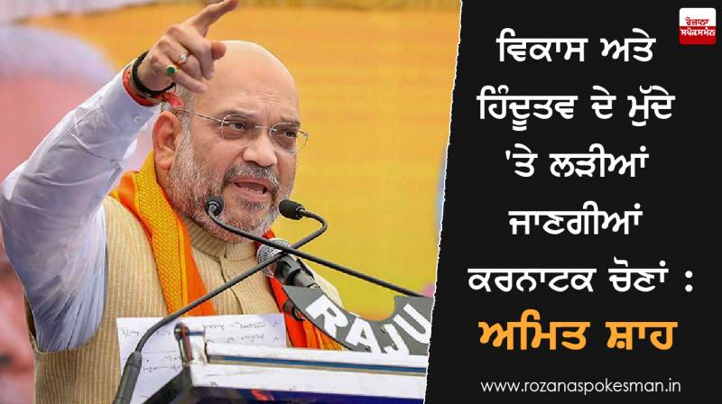 ਨਵੀਂ ਦਿੱਲੀ : ਕਰਨਾਟਕ ਵਿਚ ਹੋਣ ਵਾਲੀਆਂ ਵਿਧਾਨ ਸਭਾ ਚੋਣਾਂ ਨੂੰ ਲੈ ਕੇ ਭਾਰਤੀ ਜਨਤਾ ਪਾਰਟੀ ਦੇ ਰਾਸ਼ਟਰੀ ਪ੍ਰਧਾਨ ਅਮਿਤ ਸ਼ਾਹ ਇਨ੍ਹੀਂ ਦਿਨੀਂ ਸੂਬੇ ਦੇ ਦੌਰੇ 'ਤੇ ਹਨ। ਉਨ੍ਹਾਂ ਦੇ ਦੌਰੇ ਦਾ ਅੱਜ ਇੱਥੇ ਦੂਜਾ ਦਿਨ ਹੈ। ਇਸ ਦੌਰਾਨ ਉਨ੍ਹਾਂ ਐਲਾਨ ਕੀਤਾ ਕਿ ਭਾਜਪਾ ਸੂਬੇ ਦੇ ਅੰਦਰ ਵਿਕਾਸ ਅਤੇ ਹਿੰਦੂਤਵ ਦੇ ਮੁੱਦੇ 'ਤੇ ਚੋਣਾਂ ਲੜੇਗੀ। ਰਾਜ ਵਿਚ ਅਗਾਮੀ ਵਿਧਾਨ ਸਭਾ ਚੋਣਾਂ ਦੇ ਮੱਦੇਨਜ਼ਰ ਅਮਿਤ ਸ਼ਾਹ ਕਰਨਾਟਕ ਜਾਗ੍ਰਿਤੀ ਯਾਤਰਾ ਕੱਢ ਰਹੇ ਹਨ। ਇਸ ਯਾਤਰਾ ਦੌਰਾਨ ਸ਼ਾਹ ਉਨ੍ਹਾਂ ਇਲਾਕਿਆਂ ਦਾ ਦੌਰਾ ਕਰ ਰਹੇ ਹਨ, ਜਿੱਥੇ ਭਾਜਪਾ ਦੀ ਪਕੜ ਮਜ਼ਬੂਤ ਨਹੀਂ ਹੈ।