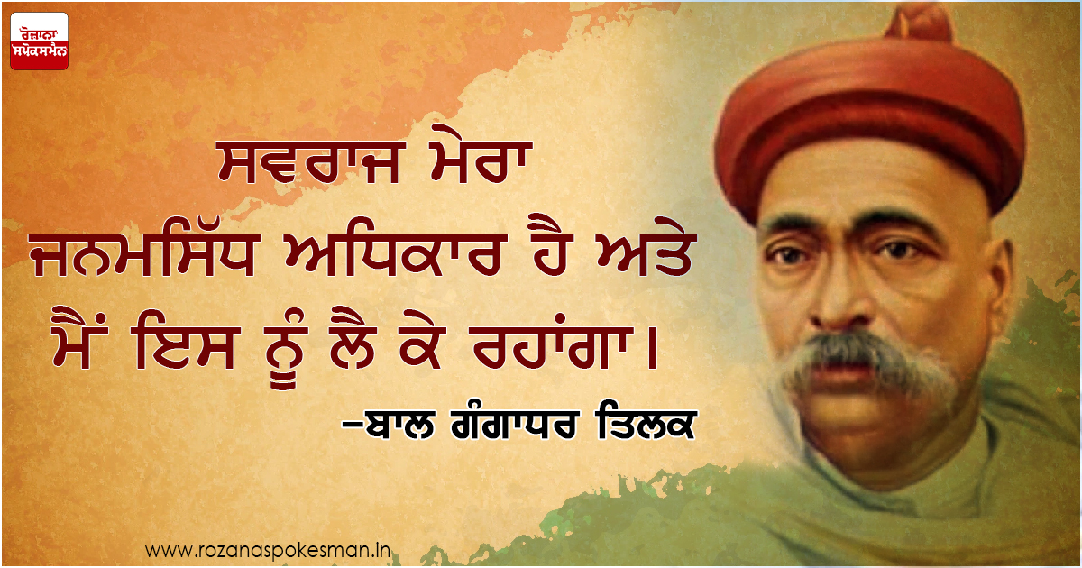 ਸਵਰਾਜ ਮੇਰਾ ਜਨਮਸਿੱਧ ਅਧਿਕਾਰ ਹੈ ਅਤੇ ਮੈਂ ਇਸ ਨੂੰ ਲੈ ਕੇ ਰਹਾਂਗਾ।