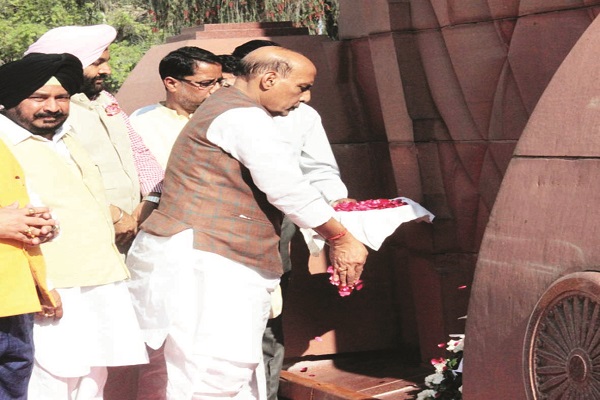ਅੰਮ੍ਰਿਤਸਰ, 13 ਮਾਰਚ (ਸੁਖਵਿੰਦਰਜੀਤ ਸਿੰਘ ਬਹੋੜੂ) : ਸ੍ਰੀ ਦਰਬਾਰ ਸਾਹਿਬ ਨਤਮਸਤਕ ਹੋਣ ਤੋਂ ਬਾਅਦ ਕੇਂਦਰੀ ਗ੍ਰਹਿ ਮੰਤਰੀ ਰਾਜਨਾਥ ਸਿੰਘ ਨੇ ਅੱਜ ਸਾਕਾ ਜਲ੍ਹਿਆਂ ਵਾਲਾ ਬਾਗ਼ 'ਚ ਕਤਲੇਆਮ ਦਾ ਇੰਗਲੈਂਡ ਦੀ ਧਰਤੀ 'ਤੇ ਸਰ-ਮਾਈਕਲ ਉਡਵਾਇਰ ਨੂੰ ਮਾਰ ਕੇ ਬਦਲਾ ਲੈਣ ਵਾਲੇ ਮਹਾਨ ਸ਼ਹੀਦ ਊਧਮ ਸਿੰਘ ਸੁਨਾਮ ਦਾ ਆਦਮਕੱਦ ਬੁੱਤ ਲੋਕ ਅਰਪਣ ਕਰਨ ਉਪਰੰਤ ਸ਼ਹੀਦਾਂ ਨੂੰ ਅਕੀਦਤ ਦੇ ਫੁੱਲ ਭੇਂਟ ਕੀਤੇ। ਇੰਟਰਨੈਸ਼ਨਲ ਸਰਵ ਕੰਬੋਜ ਸਮਾਜ (ਰਜਿ) ਦੀ ਅਗਵਾਈ ਹੇਠ ਕਰਵਾਏ ਗਏ ਸੂਬਾ ਪਧਰੀ ਸਮਾਗਮ 'ਚ ਕੈਪਟਨ ਅਮਰਿੰਦਰ ਸਿੰਘ ਮੁੱਖ ਮੰਤਰੀ ਪੰਜਾਬ ਵਲੋਂ ਕੈਬਨਿਟ ਮੰਤਰੀ ਸਾਧੂ ਸਿੰਘ ਧਰਮਸੋਤ, ਸ਼੍ਰੋਮਣੀ ਅਕਾਲੀ ਦਲ ਦੇ ਪ੍ਰੋ ਪ੍ਰੇਮ ਸਿੰਘ ਚੰਦੂਮਾਜਰਾ, ਭਾਜਪਾ ਪੰਜਾਬ ਪ੍ਰਧਾਨ ਵਿਜੇ ਸਾਂਪਲਾ ਕੇਂਦਰੀ ਰਾਜ ਮੰਤਰੀ ਪੁੱਜੇ। ਰਾਜਨਾਥ ਸਿੰਘ ਨੇ ਸੰਬੋਧਨ ਕਰਦਿਆਂ ਕਿਹਾ ਕਿ ਜਲ੍ਹਿਆਂ ਵਾਲਾ ਬਾਗ਼ ਕਾਂਡ ਦੀ 100 ਸਾਲਾ ਸ਼ਤਾਬਦੀ ਪੂਰੇ ਭਾਰਤ ਵਿਚ ਅਗਲੇ ਸਾਲ ਮਨਾਈ ਜਾਵੇਗੀ ਅਤੇ ਇਸ ਮੁਕੱਦਸ ਧਰਤੀ ਨੂੰ ਸੁੰਦਰ ਦਿਖ ਪ੍ਰਦਾਨ ਕੀਤੀ ਜਾਵੇਗੀ। ਰਾਜਨਾਥ ਸਿੰਘ ਨੇ ਬੜੇ ਭਾਵੁਕ ਸ਼ਬਦਾਂ 'ਚ ਕਿਹਾ ਕਿ ਦੇਸ਼ ਦੀ ਅਣਖ ਖ਼ਾਤਰ ਸ਼ਹੀਦ ਊਧਮ ਸਿੰਘ ਨੇ 13 ਅਪ੍ਰੈਲ 1919 ਨੂੰ ਵਾਪਰੇ ਸਾਕਾ ਜਲ੍ਹਿਆਂ ਵਾਲੇ ਬਾਗ਼ ਕਾਂਡ ਦੇ ਸ਼ਹੀਦਾਂ ਦਾ ਬਦਲਾ ਲਗਭਗ 21 ਸਾਲ ਬਾਅਦ ਲਿਆ ਅਤੇ 13 ਮਾਰਚ 1940 ਨੂੰ ਫਾਂਸੀ ਦਾ ਰੱਸਾ ਚੁੰਮਿਆ, ਜਿਸ ਦਾ ਅਸਰ ਭਾਰਤ ਵਾਸੀਆਂ ਤੇ ਖ਼ਾਸ ਕਰ ਕੇ ਨੌਜਵਾਨਾਂ ਉਪਰ ਅਮਿੱਟ ਪਿਆ। ਭਾਰਤੀ ਨੌਜਵਾਨ ਅੰਗਰੇਜ਼ਾਂ ਵਿਰੁਧ ਸੜਕਾਂ 'ਤੇ ਉਤਰੇ ਜਿਸ ਦੇ ਸਿੱਟੇ ਵਜੋਂ 1942 'ਚ ਭਾਰਤ ਛੱਡੋ ਮੁਹਿੰਮ ਉਭਰੀ ਅਤੇ ਪੰਜ ਸਾਲਾਂ ਬਾਅਦ ਭਾਵ 1947 'ਚ ਅੰਗਰੇਜ਼ਾਂ ਨੂੰ ਭਾਰਤ ਛੱਡਣਾ ਪਿਆ। ਉਨ੍ਹਾਂ ਕਿਹਾ ਕਿ ਸ਼ਹੀਦ ਊਧਮ ਸਿੰਘ ਨੌਜਵਾਨਾਂ ਲਈ ਪ੍ਰੇਰਣਾ ਸਰੋਤ ਹਨ ਤੇ ਦੇਸ਼ ਦੇ ਇਤਿਹਾਸ ਵਿਚ ਸ਼ਹੀਦ ਊਧਮ ਸਿੰਘ ਨਾਮ ਸਦਾ ਚਮਕਦਾ ਰਹੇਗਾ। ਰਾਜਨਾਥ ਸਿੰਘ ਮੁਤਾਬਕ ਅੰਮ੍ਰਿਤਸਰ ਦੁਨੀਆਂ ਭਰ ਵਿਚ ਸੱਚਖੰਡ ਸ੍ਰੀ ਹਰਿਮੰਦਰ ਸਾਹਿਬ ਅਤੇ ਜਲ੍ਹਿਆਂ ਵਾਲੇ ਬਾਗ਼ ਕਾਰਨ ਪ੍ਰਸਿੱਧ ਹੈ, ਜਿਥੇ ਇਕ ਲੱਖ ਤੋਂ ਵੱਧ ਸ਼ਰਧਾਲੂ ਨਤਮਸਤਕ ਹੁੰਦੇ ਹਨ। ਰਾਜਨਾਥ ਸਿੰਘ ਨੇ ਇੰਟਰਨੈਸ਼ਨਲ ਸਰਵ ਕੰਬੋਜ ਸਮਾਜ (ਰਜਿ) ਦੇ ਬਾਨੀ ਦੌਲਤ ਰਾਮ ਅਤੇ ਬੌਬੀ ਕੰਬੋਜ ਪ੍ਰਧਾਨ ਦੀ ਤਾਰੀਫ਼ ਕੀਤੀ, ਜਿਨ੍ਹਾਂ ਦੀ ਬਦੌਲਤ 78 ਸਾਲ ਬਾਅਦ ਸ਼ਹੀਦ ਊਧਮ ਸਿੰਘ ਦਾ ਆਦਮ ਕੱਦ ਬੁੱਤ ਲੋਕ ਅਰਪਣ ਹੋਇਆ ਹੈ।
