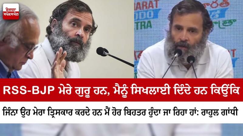 ਨਵੀਂ ਦਿੱਲੀ : ਕਾਂਗਰਸ ਨੇਤਾ ਰਾਹੁਲ ਗਾਂਧੀ ਨੇ ਸ਼ਨੀਵਾਰ ਨੂੰ ਭਾਰਤ ਜੋੜੋ ਯਾਤਰਾ 'ਤੇ 9ਵੀਂ ਪ੍ਰੈਸ ਕਾਨਫਰੰਸ ਕੀਤੀ। ਨਵੀਂ ਦਿੱਲੀ ਵਿੱਚ ਉਨ੍ਹਾਂ ਨੇ ਇੱਕ ਵਾਰ ਫਿਰ ਕੇਂਦਰ ਸਰਕਾਰ, ਬੀਜੇਪੀ ਅਤੇ ਆਰਐਸਐਸ ਉੱਤੇ ਹਮਲਾ ਬੋਲਿਆ। ਰਾਹੁਲ ਗਾਂਧੀ ਨੇ ਕਿਹਾ- ਮੈਂ ਆਰਐਸਐਸ ਅਤੇ ਭਾਜਪਾ ਦੇ ਲੋਕਾਂ ਦਾ ਧੰਨਵਾਦ ਕਰਦਾ ਹਾਂ। ਜਿੰਨਾ ਜ਼ਿਆਦਾ ਉਹ ਮੇਰੇ 'ਤੇ ਹਮਲਾ ਕਰਦੇ ਹਨ, ਮੈਂ ਓਨਾ ਹੀ ਬਿਹਤਰ ਹੁੰਦਾ ਜਾ ਰਿਹਾ ਹਾਂ। ਭਾਜਪਾ ਅਤੇ ਆਰਐਸਐਸ ਦੇ ਲੋਕ ਮੇਰੇ ਗੁਰੂ ਹਨ। ਉਹ ਮੈਨੂੰ ਸਿਖਲਾਈ ਦੇ ਰਹੇ ਹਨ। ਰਾਹੁਲ ਗਾਂਧੀ ਦੀ ਯਾਤਰਾ ਹੁਣ ਰੋਕ ਦਿੱਤੀ ਗਈ ਹੈ। ਇਹ ਯਾਤਰਾ 3 ਜਨਵਰੀ ਤੋਂ ਮੁੜ ਸ਼ੁਰੂ ਹੋਵੇਗੀ ਅਤੇ ਉੱਤਰ ਪ੍ਰਦੇਸ਼, ਪੰਜਾਬ ਤੋਂ ਹੁੰਦੀ ਹੋਈ ਜੰਮੂ-ਕਸ਼ਮੀਰ ਵਿੱਚ ਸਮਾਪਤ ਹੋਵੇਗੀ।