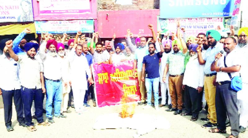 ਮੋਗਾ: ਸਾਂਝਾ ਅਧਿਆਪਕ ਮੋਰਚਾ ਪੰਜਾਬ ਜ਼ਿਲ੍ਹਾ ਮੋਗਾ ਵਲੋਂ ਸਿਖਿਆ ਮੰਤਰੀ ਪੰਜਾਬ ਦੇ ਹੁਕਮਾਂ ਅਧੀਨ ਡੀ.ਪੀ.ਆਈ. (ਸ.ਸ ) ਪੰਜਾਬ ਨੇ ਸਾਂਝਾ ਅਧਿਆਪਕ ਮੋਰਚਾ ਪੰਜਾਬ ਜ਼ਿਲ੍ਹਾ ਅੰਮ੍ਰਿਤਸਰ ਦੇ ਪੰਜ ਪ੍ਰਮੁੱਖ ਅਧਿਆਪਕ ਆਗੂਆਂ ਨੂੰ ਸਿਖਿਆ ਵਿਭਾਗ ਦੇ ਨਿਯਮਾਂ ਨੂੰ ਛਿੱਕੇ ਟੰਗ ਕੇ ਮੁਅੱਤਲ ਕਰਨ ਦੀ ਗ਼ੈਰ ਸੰਵਿਧਾਨਕ ਕਾਰਵਾਈ ਦੇ ਰੋਸ ਵਿਚ ਅਤੇ ਐਸ.ਐਸ.ਏ/ਰਮਸਾ ਅਧਿਆਪਕਾਂ ਦੀਆਂ ਤਨਖ਼ਾਹਾਂ 'ਤੇ ਚਾਰ ਗੁਣਾ ਕਟੌਤੀ ਕਰਨ ਦੇ ਵਿਰੋਧ ਵਿਚ ਸਿਖਿਆ ਮੰਤਰੀ ਓ.ਪੀ. ਸੋਨੀ ਦੀ ਅਰਥੀ ਫੂਕ ਕੇ ਇਸ ਕਾਰਵਾਈ ਦਾ ਸਖ਼ਤ ਵਿਰੋਧ ਕੀਤਾ।