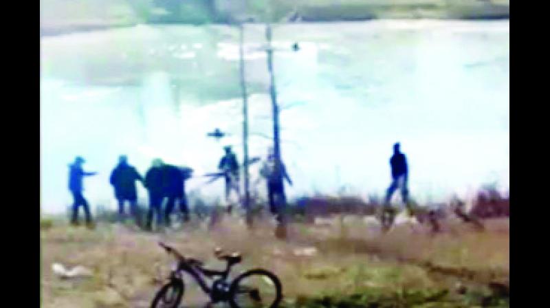 ਤਲਾਬ ਵਿਚੋਂ ਡੁਬ ਰਹੀਆਂ ਕੁੜੀਆਂ ਨੂੰ ਬਾਹਰ ਕਢਦੇ ਹੋਏ ਸਿੱਖ।