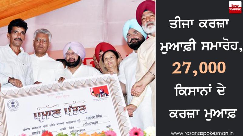 ਕੈਪਟਨ ਦੀ ਕਾਂਗਰਸ ਸਰਕਾਰ ਵਲੋਂ ਸ਼ੁਰੂ ਕੀਤੀ ਗਈ ਕਰਜ਼ਾ ਮੁਆਫ਼ੀ ਸਕੀਮ ਤਹਿਤ ਅਜ 6 ਜ਼ਿਲ੍ਹਿਆਂ ਦੇ ਕਿਸਾਨਾਂ ਦਾ ਕਰਜ਼ਾ ਮੁਆਫ਼ ਕਰਨ ਲਈ...