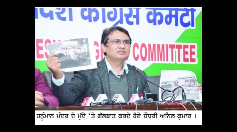 ਅੱਜ ਇਥੇ ਪੱਤਰਕਾਰ ਮਿਲਣੀ ਵਿਚ ਚੌਧਰੀ ਅਨਿਲ ਕੁਮਾਰ ਨੇ ਕਿਹਾ, Tਕੇਜਰੀਵਾਲ ਸਰਕਾਰ ਨੇ ਚਾਂਦਨੀ ਚੌਾਕ ਦੇ ਇਤਿਹਾਸਕ ਹਨੂੰਮਾਨ ਮੰਦਰ ਨੂੰ ਨਾਜਾਇਜ਼ ਉਸਾਰੀ ਦੱਸ ਕੇ ਉਸਨੂੰ ਹਟਾਉਣ ਲਈ ਭਾਜਪਾ ਦੀ ਉੱਤਰੀ ਦਿੱਲੀ ਨਗਰ ਨਿਗਮ ਨੂੰ ਚਿੱਠੀ ਲਿੱਖੀ ਸੀ | ਇਹੀ ਨਹੀਂ, ਕੇਜਰੀਵਾਲ ਸਰਕਾਰ ਤੇ ਭਾਜਪਾ ਦੋਹਾਂ ਨੇ ਅਦਾਲਤ ਵਿਚ ਮੰਨਿਆ ਸੀ ਕਿ ਮੰਦਰ ਨਾਜਾਇਜ਼ ਉਸਾਰੀ ਹੈ |''