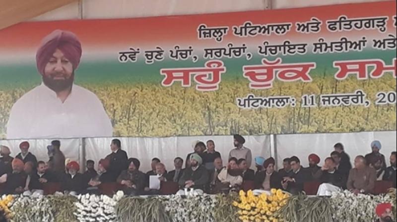 ਇਸ ਦੌਰਾਨ ਮੁੱਖ ਮੰਤਰੀ ਨੇ ਜ਼ਿਲਾ ਪਟਿਆਲਾ ਦੀਆਂ 1036 ਗ੍ਰਾਮ ਪੰਚਾਇਤਾਂ ਦੇ ਸਰਪੰਚਾਂ ਅਤੇ 6299 ਪੰਚਾਇਤ ਮੈਂਬਰਾਂ, ਜ਼ਿਲ੍ਹਾ ਪ੍ਰੀਸ਼ਦ ਪਟਿਆਲਾ ਦੇ 25 ਮੈਂਬਰਾਂ ਤੇ 9 ਬਲਾਕ ਸੰਮਤੀਆਂ ਦੇ 193 ਮੈਂਬਰਾਂ ਸਮੇਤ ਜ਼ਿਲ੍ਹਾ ਫ਼ਤਹਿਗੜ੍ਹ ਸਾਹਿਬ ਦੀਆਂ ਗ੍ਰਾਮ ਪੰਚਾਇਤਾਂ ਦੇ 426 ਸਰਪੰਚਾਂ ਅਤੇ 2433 ਪੰਚਾਇਤ ਮੈਂਬਰਾਂ ਸਮੇਤ ਜ਼ਿਲਾ ਪ੍ਰੀਸ਼ਦ ਫ਼ਤਹਿਗੜ੍ਹ ਸਾਹਿਬ ਦੇ 10 ਮੈਂਬਰਾਂ ਅਤੇ 5 ਬਲਾਕ ਸੰਮਤੀਆਂ ਦੇ 77 ਮੈਂਬਰਾਂ ਨੂੰ ਅਹੁਦੇ ਦੀ ਸਹੁੰ ਚੁਕਾਈ। ਸਮਾਗਮ ਦੌਰਾਨ ਪੰਜਾਬੀ ਯੂਨੀਵਰਸਿਟੀ ਦੇ ਯੁਵਕ ਭਲਾਈ ਵਿਭਾਗ ਦੇ ਕਲਾਕਾਰਾਂ ਸ੍ਰੀ ਵਿਜੇ ਯਮਲਾ, ਸ੍ਰੀ ਗਗਨਦੀਪ ਬਦਰਾ ਤੇ ਬੀਬਾ ਸਰਘੀ ਨੇ ਸੱਭਿਆਚਾਰਕ ਗੀਤਾਂ ਦੀ ਪੇਸ਼ਕਾਰੀ ਕੀਤੀ। ਇਸ ਸਹੁੰ ਚੁੱਕ ਸਮਾਗਮ 'ਚ ਮੁੱਖ ਮੰਤਰੀ ਦੇ ਸਲਾਹਕਾਰ ਸ. ਭਰਤਇੰਦਰ ਸਿੰਘ ਚਾਹਲ,