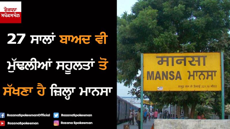 ਪੰਜਾਬ: ਮਾਨਸਾ ਜ਼ਿਲ੍ਹੇ ਨੂੰ ਬਣਿਆਂ 27 ਸਾਲ ਹੋ ਚੁਕੇ ਹਨ, 13 ਅਪ੍ਰੈਲ 1992 ਨੰ ਸਾਬਕਾ ਮੁੱਖ ਮੰਤਰੀ ਸਵ. ਬੇਅੰਤ ਸਿੰਘ ਨੇ ਮਾਨਸਾ ਜ਼ਿਲ੍ਹੇ ਦਾ ਉਦਘਾਟਨ ਕੀਤਾ ਸੀ। ਪਰ 27 ਸਾਲਾਂ ਬਾਅਦ ਵੀ ਮਾਨਸਾ ਜ਼ਿਲ੍ਹੇ ਦੇ ਲੋਕ ਮੁੱਢਲੀਆਂ ਸਹੂਲਤਾਂ ਤੋਂ ਵਾਂਝੇ ਹਨ। ਜ਼ਿਲ੍ਹੇ ਵਿਚ ਸਥਿਤ ਦੋ ਵੱਡੀਆਂ ਫੈਕਟਰੀਆਂ ਧਾਗਾ ਮਿੱਲ ਅਤੇ ਗੰਨਾ ਮਿੱਲ, ਜ਼ਿਲ੍ਹਾ ਬਣਨ ਤੋਂ ਤੁਰੰਤ ਬਾਅਦ ਵੇਚ ਦਿੱਤੀਆਂ ਗਏਆਂ ਅਤੇ ਹਜ਼ਾਰਾਂ ਨੌਜਵਾਨ ਬੇਰੁਜ਼ਗਾਰ ਹੋ ਗਏ।