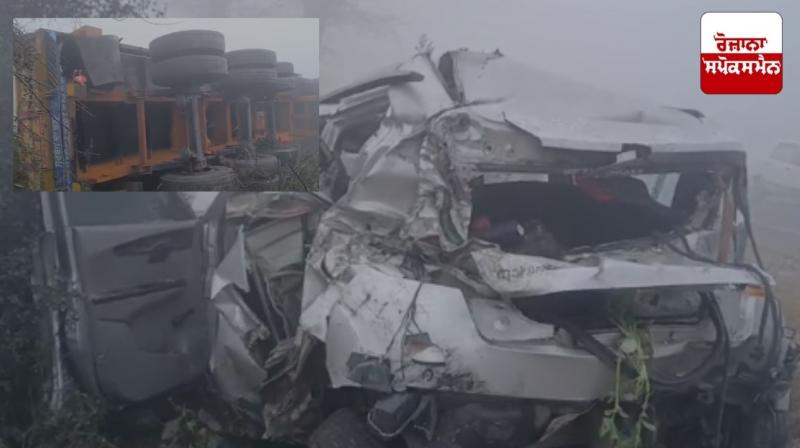 ਕੋਟਸੇਖਾ : ਮੋਗਾ ਦੇ ਕੋਟਸ਼ੇਖਾ ਰੋਡ 'ਤੇ ਪਿੰਡ ਜੇਨੇਰ ਨੇੜੇ ਐਤਵਾਰ ਸਵੇਰੇ ਪਈ ਸੰਘਣੀ ਧੁੰਦ ਕਾਰਨ ਇੱਕ ਭਿਆਨਕ ਸੜਕ ਹਾਦਸਾ ਵਾਪਰ ਗਿਆ । ਇਹ ਹਾਦਸਾ ਉਦੋਂ ਵਾਪਰਿਆ ਜਦੋਂ ਇੱਕ ਤੇਜ਼ ਰਫ਼ਤਾਰ ਟਰੱਕ ਓਵਰਟੇਕ ਕਰਨ ਸਮੇਂ ਕਾਰ ਨਾਲ ਟਕਰਾ ਗਿਆ ਅਤੇ ਕਾਰ ਬੁਰੀ ਤਰ੍ਹਾਂ ਨੁਕਸਾਨੀ ਗਈ । ਹਾਦਸੇ ਤੋਂ ਬਾਅਦ ਪਿੱਛੇ ਤੋਂ ਆ ਰਿਹਾ ਇੱਕ ਬਜਰੀ ਨਾਲ ਭਰਿਆ ਟਰੱਕ ਆਪਣਾ ਕੰਟਰੋਲ ਬੈਠਿਆ ਅਤੇ ਉਹ ਵੀ ਪਲਟ ਗਿਆ । ਹਾਦਸੇ ਦੌਰਾਨ ਕਾਰ ਚਾਲਕ ਗਿਆਨ ਸਿੰਘ ਜ਼ਖਮੀ ਹੋ ਗਿਆ ਅਤੇ ਉਸ ਨੂੰ ਇਲਾਜ ਲਈ ਮੋਗਾ ਸਿਵਲ ਹਸਪਤਾਲ ਵਿੱਚ ਦਾਖਲ ਕਰਵਾਇਆ ਗਿਆ।