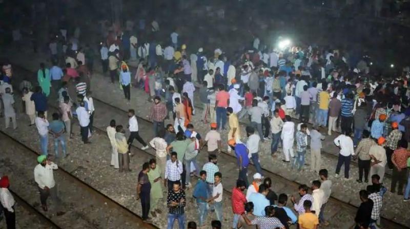 ਅੰਮ੍ਰਿਤਸਰ (ਭਾਸ਼ਾ) :- ਪੰਜਾਬ ਵਿਚ ਅਮ੍ਰਿਤਸਰ ਦੇ ਕੋਲ ਸ਼ੁੱਕਰਵਾਰ ਸ਼ਾਮ ਬਹੁਤ ਵੱਡਾ ਰੇਲ ਹਾਦਸਾ ਹੋ ਗਿਆ। ਰੇਲ ਪਟਰੀਆਂ ਉੱਤੇ ਖੜੇ ਹੋ ਕੇ ਰਾਵਣ ਨੂੰ ਸੜਦਾ ਵੇਖ ਰਹੀ ਭੀੜ ਨੂੰ ਤੇਜ ਰਫਤਾਰ ਟ੍ਰੇਨ ਕੁਚਲਦੀ ਹੋਈ ਨਿਕਲ ਗਈ। ਇਸ ਵਿਚ ਘੱਟ ਤੋਂ ਘੱਟ 61 ਲੋਕਾਂ ਦੀ ਮੌਤ ਹੋ ਗਈ, ਜਦੋਂ ਕਿ 72 ਤੋਂ ਜ਼ਿਆਦਾ ਜਖ਼ਮੀ ਹੋ ਗਏ। ਮੌਤਾਂ ਦੀ ਇਹ ਸੰਖਿਆ ਵੱਧ ਸਕਦੀ ਹੈ। ਹਾਦਸਾ ਜੋੜਾ ਫਾਟਕ ਦੇ ਕੋਲ ਹੋਇਆ। ਮੌਕੇ ਉੱਤੇ ਘੱਟ ਤੋਂ ਘੱਟ 300 ਲੋਕ ਮੌਜੂਦ ਸਨ ਜੋ ਪਟਰੀਆਂ ਦੇ ਨਜ਼ਦੀਕ ਇਕ ਮੈਦਾਨ ਵਿਚ ਰਾਵਣ ਨੂੰ ਜਲਦਾ ਵੇਖ ਰਹੇ ਸਨ।
