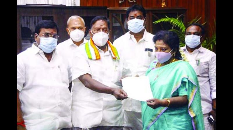 ਵੀ. ਨਾਰਾਇਣਸਾਮੀ ਨੇ ਉਪ ਰਾਜਪਾਲ ਤਾਮਿਲਿਸਾਈ ਸੁੰਦਰਾਰਾਜਨ ਨਾਲ ਮੁਲਾਕਾਤ ਕੀਤੀ ਅਤੇ ਅਪਣਾ ਅਸਤੀਫ਼ਾ ਉਨ੍ਹਾਂ ਨੂੰ ਸੌਂਪ ਦਿਤਾ |