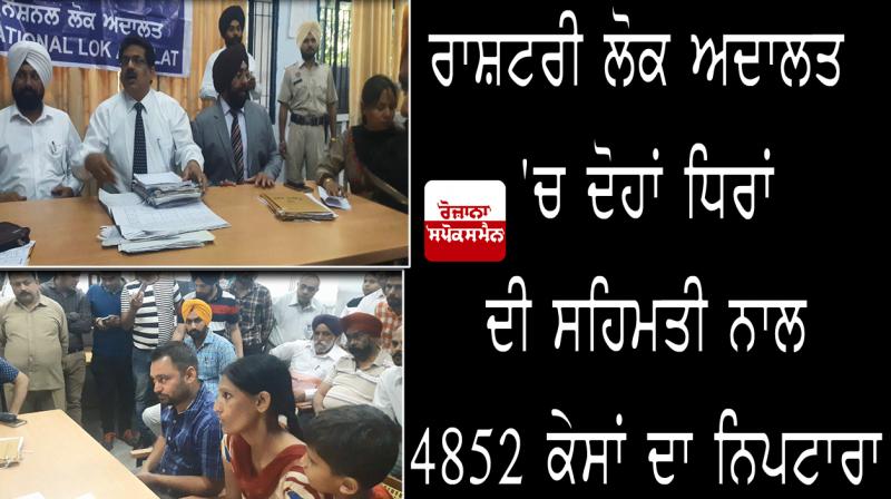 ਇਸ ਨੈਸ਼ਨਲ ਲੋਕ ਅਦਾਲਤ ਵਿਚ ਕੁੱਲ 14589 ਕੇਸ ਰੱਖੇ ਗਏ ਜਿਨ੍ਹਾਂ ਵਿਚੋਂ 4852 ਕੇਸਾਂ ਦਾ ਨਿਪਟਾਰਾ ਦੋਹਾ ਧਿਰਾਂ ਦੀ ਆਪਸੀ ਸਹਿਮਤੀ ਰਾਹੀਂ ਕਰਵਾਇਆ ਗਿਆ।