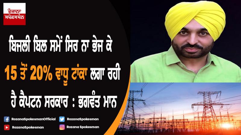 'ਆਪ' ਹੈੱਡਕੁਆਟਰ ਤੋਂ ਜਾਰੀ ਪਾਰਟੀ ਦੇ ਸੂਬਾ ਪ੍ਰਧਾਨ ਅਤੇ ਸੰਸਦ ਮੈਂਬਰ ਭਗਵੰਤ ਮਾਨ ਅਤੇ ਮਹਿੰਗੀਆਂ ਬਿਜਲੀ ਦਰਾਂ ਵਿਰੁੱਧ 'ਆਪ' ਵੱਲੋਂ ਵਿੱਢੇ ਹੋਏ 'ਬਿਜਲੀ ਮੋਰਚਾ' ਦੇ ਕੁਆਰਡੀਨੇਟਰ ਵਿਧਾਇਕ ਮੀਤ ਹੇਅਰ ਵੱਲੋਂ ਜਾਰੀ ਸਾਂਝੇ ਬਿਆਨ ਰਾਹੀਂ ਆਮ ਆਦਮੀ ਪਾਰਟੀ ਨੇ ਲੋਕਾਂ ਨੂੰ ਬਿਜਲੀ ਦੇ ਬਿਲ ਸਮੇਂ ਸਿਰ ਨਾ ਮਿਲਣ ਅਤੇ ਨਵੇਂ ਕੁਨੈਕਸ਼ਨ ਨਾ ਮਿਲਣ ਦਾ ਮੁੱਦਾ ਉਠਾਇਆ ਹੈ। ਭਗਵੰਤ ਮਾਨ ਨੇ ਕਿਹਾ ਕਿ ਲੋਕਾਂ ਦੀ 'ਜੇਬ ਕੱਟਣ' 'ਚ ਕੈਪਟਨ ਅਮਰਿੰਦਰ ਸਿੰਘ ਸਰਕਾਰ ਨੇ ਬਾਦਲਾਂ ਵਾਂਗ ਮੁਹਾਰਤ ਹਾਸਲ ਕਰ ਲਈ ਹੈ। ਮਾਨ ਨੇ ਦਸਿਆ ਕਿ ਪਿਛਲੇ 20-25 ਦਿਨਾਂ ਤੋਂ ਬਿਜਲੀ ਦਫ਼ਤਰਾਂ ਦਾ ਕੰਮ ਠੱਪ ਕਰ ਰੱਖਿਆ ਹੈ। ਜੋ ਬਿਲ 15-20 ਦਿਨ ਪਹਿਲਾਂ ਬਣਾ ਕੇ ਘਰਾਂ, ਦੁਕਾਨਾਂ ਅਤੇ ਫ਼ੈਕਟਰੀਆਂ 'ਚ ਭੇਜਣਾ ਸੀ, ਅਜੇ ਤੱਕ ਤਿਆਰ (ਜਨਰੇਟ) ਹੀ ਨਹੀਂ ਕੀਤਾ। ਗ਼ਲਤ ਬਿੱਲਾਂ 'ਚ ਸੋਧ ਜਾਂ ਨਵੇਂ ਬਿਜਲੀ ਕੁਨੈਕਸ਼ਨ ਲੈਣ ਵਾਲੇ ਲੋਕ ਭਾਰੀ ਖੱਜਲ-ਖ਼ੁਆਰੀ ਦਾ ਸਾਹਮਣਾ ਕਰ ਰਹੇ ਹਨ, ਪਰ ਸਰਕਾਰ 'ਸਾਰਾਗੜ੍ਹੀ' ਦੇ ਮਹਿਲ ਜਾਂ ਹਿਮਾਚਲ ਦੀਆਂ ਵਾਦੀਆਂ 'ਚ ਮਸਤ ਹੈ।