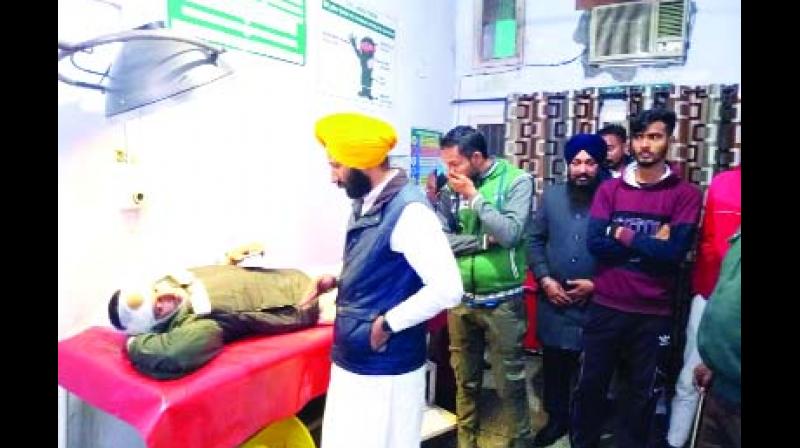 ਕੈਪਸ਼ਨ: ਸਿਵਲ ਹਸਪਤਾਲ ਵਿਖੇ ਜਖ਼ਮੀ ਦਾ ਹਾਲ ਚਾਲ ਪੁੱਛਦੇ ਹੋਏ ਆਮ ਪਾਰਟੀ ਦੇ ਉਮੀਦਵਾਰ ਅਮ੍ਰਿੰਤਪਾਲ ਸਿੰਘ ਸੁਖਾਨੰਦ। (ਸੰਦੀਪ)