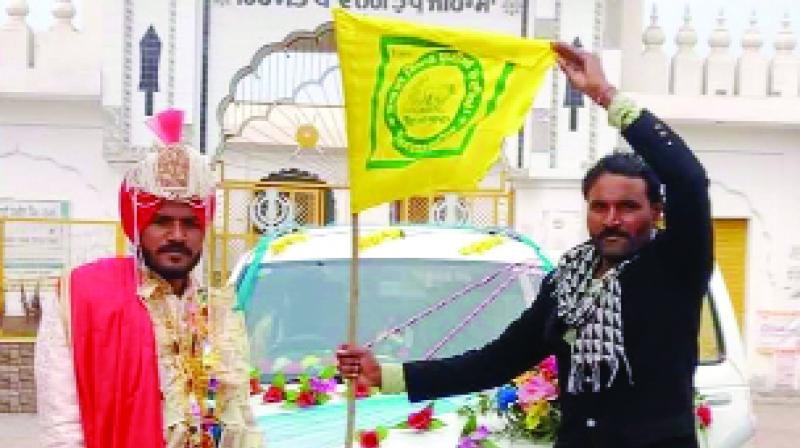ਪਿੰਡ ਦਿਉਣ ਖੇੜੇ ਦਾ ਨੌਜਵਾਨ ਕਿਸਾਨੀ ਝੰਡਾ ਲਗਾ ਕੇ ਬਰਾਤ ਢੁਕਿਆ