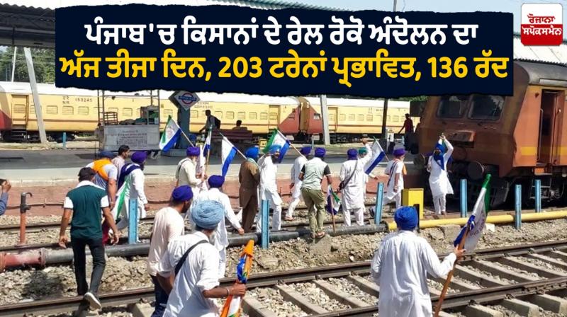 ਮੁਹਾਲੀ: ਪੰਜਾਬ ਵਿਚ ਮੁਆਵਜ਼ੇ, ਘੱਟੋ-ਘੱਟ ਸਮਰਥਨ ਮੁੱਲ ਅਤੇ ਕਰਜ਼ਾ ਮੁਆਫ਼ੀ ਨੂੰ ਲੈ ਕੇ ਕਿਸਾਨਾਂ ਦਾ ਅੰਦੋਲਨ ਤੀਜੇ ਦਿਨ ਵਿੱਚ ਦਾਖ਼ਲ ਹੋ ਗਿਆ ਹੈ। ਪੰਜਾਬ ਭਰ ਵਿੱਚ ਰੇਲਵੇ ਲਾਈਨਾਂ ’ਤੇ ਬੈਠੇ ਕਿਸਾਨ ਅੱਜ ਹਰਿਆਣਾ ਵਿੱਚ ਵੀ ਆਪਣਾ ਧਰਨਾ ਸ਼ੁਰੂ ਕਰ ਰਹੇ ਹਨ। ਵੱਖ-ਵੱਖ ਸੂਬਿਆਂ ਦੀਆਂ 19 ਕਿਸਾਨ ਜਥੇਬੰਦੀਆਂ ਅੱਜ ਅੰਬਾਲਾ 'ਚ 20 ਥਾਵਾਂ 'ਤੇ ਰੇਲਾਂ ਰੋਕ ਕੇ ਰੋਸ ਪ੍ਰਦਰਸ਼ਨ ਕਰਨਗੀਆਂ।