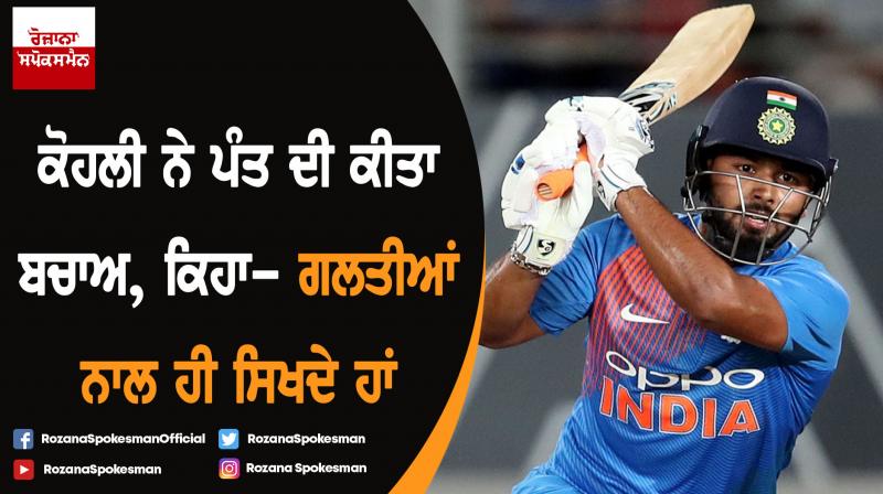 ਮੈਨਚੈਸਟਰ : ਨਿਊਜ਼ੀਲੈਂਡ ਵਿਰੁਧ ਵਿਸ਼ਵ ਕੱਪ ਸੈਮੀਫ਼ਾਈਨਲ ਵਿਚ ਖ਼ਰਾਬ ਸ਼ਾਟ ਖੇਡ ਕੇ ਆਊਟ ਹੋਏ ਰਿਸ਼ਭ ਪੰਤ 'ਤੇ ਭਾਂਵੇ ਹੀ ਸਵਾਲ ਉਠ ਰਹੇ ਹੋਣ ਪਰ ਭਾਰਤੀ ਕਪਤਾਨ ਵਿਰਾਟ ਕੋਹਲੀ ਨੇ ਇਸ ਨੌਜਵਾਨ ਬੱਲੇਬਾਜ਼ ਦਾ ਬਚਾਅ ਕੀਤਾ। ਕੋਹਲੀ ਨੇ ਕਿਹਾ, ''ਉਹ ਅਜੇ ਨੌਜਵਾਨ ਹਨ। ਮੈਂ ਵੀ ਜਦੋਂ ਛੋਟਾ ਸੀ ਤਦ ਮੈਂ ਵੀ ਕਾਫੀ ਗਲਤੀਆਂ ਕੀਤੀਆਂ। ਉਹ ਵੀ ਸਿਖ ਜਾਵੇਗਾ। ਉਹ ਬਾਅਦ ਵਿਚ ਸੋਚੇਗਾ ਕਿ ਮੈਂ ਉਸ ਸਮੇਂ ਗਲਤੀਆਂ ਕੀਤੀਆਂ ਸੀ। ਉਸ ਨੂੰ ਹੁਣ ਤੋਂ ਸਮਝ ਆ ਰਿਹਾ ਹੈ।''