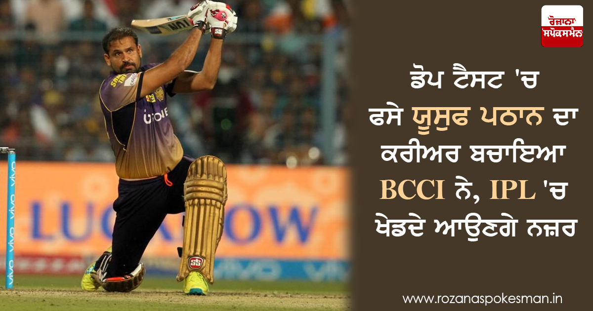 ਭਾਰਤੀ ਹਰਫਨਮੌਲਾ ਯੂਸੁਫ ਪਠਾਨ 'ਤੇ ਡੋਪ ਟੈਸਟ 'ਚ ਨਾਕਾਮ ਰਹਿਣ ਦੇ ਕਾਰਨ ਅੱਜ ਪੰਜ ਮਹੀਨੇ ਦੀ ਪੂਰਵ ਪ੍ਰਭਾਵੀ ਮੁਅੱਤਲੀ ਲਗਾਈ ਗਈ ਜੋ 14 ਜਨਵਰੀ ਨੂੰ ਖ਼ਤਮ ਹੋ ਜਾਵੇਗੀ। ਬੀਸੀਸੀਆਈ ਨੇ ਸਵੀਕਾਰ ਕੀਤਾ ਕਿ ਉਨ੍ਹਾਂ ਨੇ ਅਣਜਾਣੇ ਵਿਚ ਪ੍ਰਤੀਬੰਧਿਤ ਪਦਾਰਥ ਦਾ ਸੇਵਨ ਕੀਤਾ ਹੈ। ਬੀਸੀਸੀਆਈ ਨੇ ਇਕ ਬਿਆਨ ਵਿਚ ਕਿਹਾ,'' ਯੂਸੁਫ ਪਠਾਨ 'ਤੇ ਡੋਪਿੰਗ ਉਲੰਘਣਾ ਦੇ ਕਾਰਨ ਰੋਕ ਲਗਾਈ ਗਈ ਹੈ। ਉਨ੍ਹਾਂ ਨੇ ਅਣਜਾਣੇ ਵਿਚ ਇਕ ਪ੍ਰਤੀਬੰਧਿਤ ਪਦਾਰਥ ਦਾ ਸੇਵਨ ਕਰ ਲਿਆ ਜੋ ਆਮ ਤੌਰ 'ਤੇ ਸਰਦੀ ਖਾਸੀ ਦੇ ਸਿਰਪ ਵਿਚ ਪਾਇਆ ਜਾਂਦਾ ਹੈ।'' ਪਠਾਨ ਨੇ ਪਿਛਲੇ ਸਾਲ 16 ਮਾਰਚ ਨੂੰ ਇਕ ਘਰੇਲੂ ਟੀ-20 ਟੂਰਨਾਮੈਂਟ ਦੇ ਬਾਅਦ ਬੀਸੀਸੀਆਈ ਦੇ ਡੋਪਿੰਗ ਨਿਰੋਧਕ ਪ੍ਰੀਖਿਆ ਪ੍ਰੋਗਰਾਮ ਦੇ ਤਹਿਤ ਮੂਤਰ ਦਾ ਨਮੂਨਾ ਦਿੱਤਾ ਸੀ।