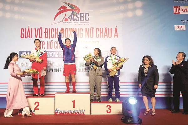 ਵਿਯਤਨਾਮ, 8 ਨਵੰਬਰ: ਭਾਰਤੀ ਮੁੱਕੇਬਾਜ਼ੀ ਦੀ 'ਵੰਡਰ ਗਰਲ' ਐਮ.ਸੀ. ਮੈਰੀਕਾਮ (48 ਕਿਲੋਗ੍ਰਾਮ) ਨੇ ਏਸ਼ੀਆਈ ਮੁੱਕੇਬਾਜ਼ੀ 'ਚ ਪੰਜਵੀਂ ਵਾਰ ਸੋਨੇ ਦਾ ਤਮਗ਼ਾ ਅਪਣੇ ਨਾਮ ਕਰ ਲਿਆ ਜਦੋਂ ਕਿ ਸੋਨੀਆ ਲਾਥੇਰ (57 ਕਿਲੋਗ੍ਰਾਮ) ਨੂੰ ਸਿਲਵਰ ਮੈਡਲ ਨਾਲ ਸਬਰ ਕਰਨਾ ਪਿਆ।ਪੰਜ ਵਾਰ ਦੀ ਵਿਸ਼ਵ ਚੈਂਪੀਅਨ ਅਤੇ ਉਲੰਪਿਕ ਕਾਂਸੀ ਦਾ ਤਮਗ਼ਾ ਜੇਤੂ ਮੈਰੀਕਾਮ ਨੇ ਉਤਰ ਕੋਰੀਆ ਦੀ ਕਿਮ ਹਿਯਾਂਗ ਨੂੰ 5-0 ਨਾਲ ਹਰਾਇਆ। ਇਹ 2014 ਏਸ਼ੀਆਈ ਖੇਡਾਂ ਤੋਂ ਬਾਅਦ ਮੈਰੀਕਾਮ ਦਾ ਪਹਿਲਾ ਅੰਤਰਰਾਸ਼ਟਰੀ ਸੋਨ ਤਮਗ਼ਾ ਹੈ ਅਤੇ ਇਸ ਸਾਲ 'ਚ ਉੁਨ੍ਹਾਂ ਦਾ ਪਹਿਲਾ ਤਮਗ਼ਾ ਹੈ। ਵਿਸ਼ਵ ਚੈਂਪੀਅਨਸ਼ਿਪ ਦੀ ਸਿਲਵਰ ਮੈਡਲ ਜੇਤੂ ਸੋਨੀਆ ਨੂੰ ਮੁੜ ਸਿਲਵਰ ਨਾਲ ਹੀ ਸਬਰ ਕਰਨਾ ਪਿਆ। ਉਹ ਵੰਡੇ ਹੋਏ ਫ਼ੈਸਲੇ 'ਚ ਚੀਨ ਦੀ ਯਿਨ ਜੋਨਹੁਆ ਤੋਂ ਹਾਰ ਗਈ। ਭਾਰਤ ਨੂੰ ਇਸ