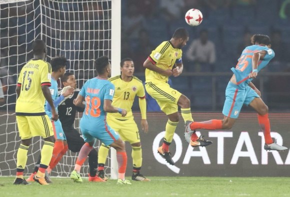 ਸੰਘਰਸ਼ਪੂਰਣ ਮੁਕਾਬਲੇ 'ਚ ਕੋਲੰਬੀਆ ਨੇ ਜਵਾਹਰਲਾਲ ਨਹਿਰੂ ਸਟੇਡਿਅਮ ਵਿੱਚ ਖੇਡੇ ਗਏ ਗਰੁੱਪ - ਏ ਦੇ ਮੈਚ ਵਿੱਚ ਭਾਰਤ ਨੂੰ 2 - 1 ਦੇ ਅੰਤਰ ਨਾਲ ਮਾਤ ਦਿੱਤੀ। ਕੋਲੰਬੀਆ ਲਈ ਦੋਵੇਂ ਗੋਲ ਜੁਆਨ ਸੇਬਸਟਿਅਨ ਪੇਨਾਲੋਜਾ ਨੇ 49ਵੇਂ ਅਤੇ 83ਵੇਂ ਮਿੰਟ ਵਿੱਚ ਕੀਤੇ। ਭਾਰਤ ਲਈ ਵਿਸ਼ਵ ਕੱਪ ਦਾ ਪਹਿਲਾ ਗੋਲ 82ਵੇਂ ਮਿੰਟ ਵਿੱਚ ਜੈਕਸਨ ਸਿੰਘ ਥਾਯੁਨਾਓਜਾਮ ਨੇ ਕੀਤਾ।