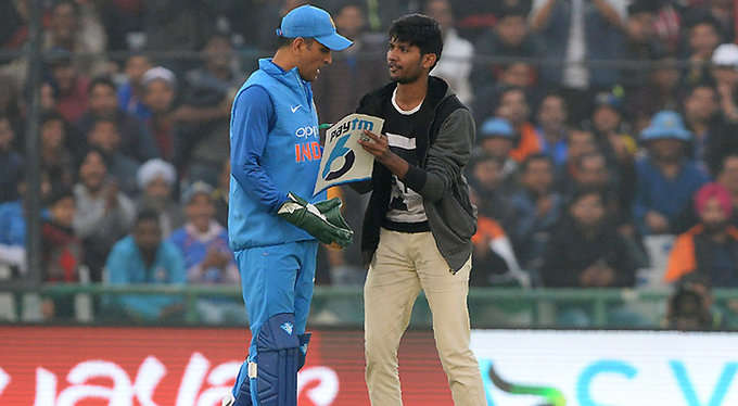 ਭਾਰਤ ਅਤੇ ਸ਼੍ਰੀਲੰਕਾ ਦੇ ਵਿੱਚ ਮੋਹਾਲੀ ਵਨਡੇ ਦੌਰਾਨ ਧੋਨੀ ਨੂੰ ਲੈ ਕੇ ਫੈਨਸ ਦਾ ਕ੍ਰੇਜ ਇਕਬਾਰ ਫਿਰ ਨਜ਼ਰ ਆਇਆ। ਜਦੋਂ ਮੈਚ ਵਿੱਚ ਧੋਨੀ ਨੂੰ ਮਿਲਣ ਲਈ ਇੱਕ ਫੈਨ ਗਰਾਉਂਡ ਦੇ ਵਿੱਚ ਪਹੁੰਚ ਗਿਆ। ਇਹ ਘਟਨਾ ਸ਼੍ਰੀਲੰਕਾਈ ਟੀਮ ਦੀ ਇਨਿੰਗ ਦੇ ਦੌਰਾਨ ਹੋਈ।