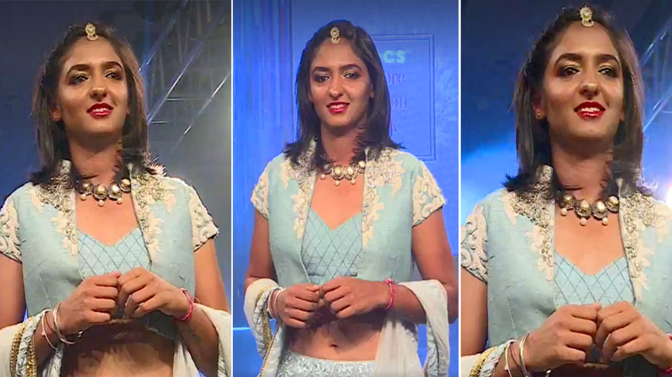 ਮੈਸੂਰ: ਭਾਰਤੀ ਮਹਿਲਾ ਕ੍ਰਿਕਟ ਟੀਮ ਦੀ ਉਪ ਕਪਤਾਨ ਹਰਮਨਪ੍ਰੀਤ ਕੌਰ ਮੈਸੂਰ ਫੈਸ਼ਨ ਵੀਕ-2017 'ਚ ਐਤਵਾਰ ਨੂੰ ਰੈਂਪ 'ਤੇ ਉਤਰੀ। ਉਹ ਇਸ ਸ਼ੋਅ 'ਚ ਡਿਜ਼ਾਈਨਰ ਅਰਚਨਾ ਕੋਚਰ ਦੇ ਲਈ ਰੈਂਪ 'ਤੇ ਉਤਰੀ। ਇਸ ਸ਼ੋਅ ਦੇ ਲਈ ਹਰਮਨਪ੍ਰੀਤ ਕੌਰ ਨੇ ਅਰਚਨਾ ਵੱਲੋਂ ਡਿਜ਼ਾਈਨ ਕੀਤਾ ਗਿਆ ਨੀਲੇ ਰੰਗ ਦਾ ਲਹਿੰਗਾ ਪਾਇਆ ਹੋਇਆ ਸੀ ਅਤੇ ਉਹ ਪਹਿਲੀ ਵਾਰੀ ਰੈਂਪ 'ਤੇ ਚਲਦੀ ਹੋਈ ਕਾਫੀ ਘਬਰਾਈ ਹੋਈ ਨਜ਼ਰ ਆ ਰਹੀ ਸੀ ਪਰ ਉਸ ਦੇ ਚਿਹਰੇ 'ਤੇ ਸੋਹਣੀ ਮੁਸਕਾਨ ਨੇ ਸ਼ੋਅ 'ਚ ਮੌਜੂਦ ਸਾਰੇ ਲੋਕਾਂ ਨੂੰ ਤਾੜੀਆਂ ਵਜਾ ਕੇ ਉਨ੍ਹਾਂ ਦਾ ਸਵਾਗਤ ਕਰਨ ਦੇ ਲਈ ਮਜਬੂਰ ਕਰ ਦਿੱਤਾ।
