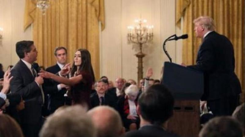 ''ਟਰੰਪ ਨੇ ਕਿਹਾ ਕਿ ਇਹ ਮੀਡੀਆ ਦਾ ਰਵਈਆ ਦੁਸ਼ਮਣਾ ਅਤੇ ਤੇ ਬਹੁਤ ਨਿਰਾਸ਼ਾਜਨਕ ਹੈ।' ਇਨ੍ਹਾਂ ਹੀ ਨਹੀਂ ਟਰੰਪ ਨੇ ਕਥਿਤ ਤੌਰ 'ਤੇ ਨਸਲੀ ਸਵਾਲ ਪੁੱਛਣ ਵਾਲੇ ਸੀਐਨਐਨ ਦੇ ਰਿਪੋਰਟਰ ਦਾ ਪ੍ਰੈਸ ਪਾਸ ਵੀ ਰੱਦ ਕਰ ਦਿਤਾ। ਵਾਈਟ ਹਾਉਸ ਦੀ ਪ੍ਰੈਸ ਸਕੱਤਰ ਸਾਰਾ ਸੈਂਡਰਸ ਨੇ ਇੱਕ ਬਿਆਨ ਜਾਰੀ ਕਰ ਅਕੋਸਟਾ ਉੱਤੇ ਇਲਜ਼ਾਮ ਲਗਾਇਆ ਕਿ ਉਨ੍ਹਾਂ ਨੇ ਵਾਇਟ ਹਾਉਸ ਇੰਟਰਨ ਦੇ ਤੌਰ 'ਤੇ ਅਪਣਾ ਕੰਮ ਕਰਨ ਦੀ ਕੋਸ਼ਿਸ਼ ਕਰ ਰਹੀ ਇਕ ਮੁਟਿਆਰ 'ਤੇ ਅਪਣਾ ਹੱਥ ਰੱਖਿਆ।ਸਾਰਾ ਨੇ ਅਪਣੇ ਬਿਆਨ ਵਿਚ ਇਸ ਨੂੰ ਪੂਰੀ ਤਰ੍ਹਾਂ ਅਸਵੀਕਾਰਿਆ ਕਰਾਰ ਦਿਤਾ।