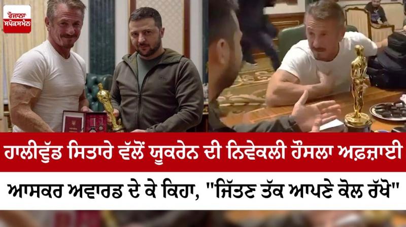 ਹਾਲੀਵੁੱਡ ਅਭਿਨੇਤਾ-ਨਿਰਦੇਸ਼ਕ ਸੀਨ ਪੇਨ ਨੇ ਜੰਗ ਨਾਲ ਜੂਝ ਰਹੇ ਯੂਕਰੇਨ ਨਾਲ ਏਕੇ ਦਾ ਪ੍ਰਗਟਾਵਾ ਕਰਦੇ ਹੋਏ, ਆਪਣੇ ਦੋ ਆਸਕਰਾਂ ਵਿੱਚੋਂ ਇੱਕ ਯੂਕਰੇਨ ਦੇ ਰਾਸ਼ਟਰਪਤੀ ਵੋਲੋਡੀਮੀਰ ਜ਼ੇਲੇਨਸਕੀ ਨੂੰ ਤੋਹਫ਼ੇ ਵਜੋਂ ਦਿੱਤਾ, ਅਤੇ ਕਿਹਾ ਕਿ ਜੇਕਰ ਉਸ ਦੇ ਅਵਾਰਡ ਦੇ ਉੱਥੇ ਰਹਿਣ ਨਾਲ ਉਹ ਲੜਾਈ 'ਚ 'ਬਿਹਤਰ ਤੇ ਮਜ਼ਬੂਤ' ਮਹਿਸੂਸ ਕਰਨਗੇ।