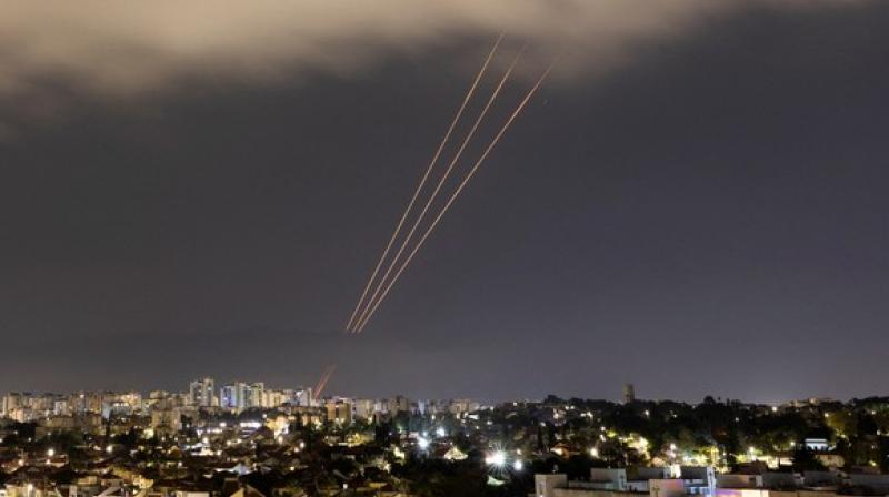 #WATCH | Tel Aviv: Iranian drones intercepted by Israel's Iron Dome, as Iran launches a drone attack against Israel by sending thousands of drones into its airspace.