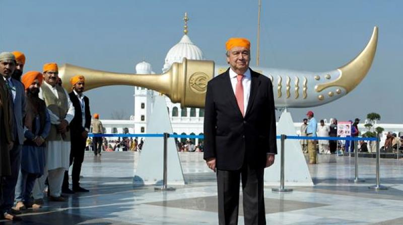 ਇਸ ਦੌਰਾਨ ਗੁਤਾਰੇਸ ਨੂੰ ਪਾਕਿਸਤਾਨ ਅਤੇ ਭਾਰਤ ਦਰਮਿਆਨ ਕਰਤਾਰਪੁਰ ਲਾਂਘੇ ਦੇ ਸਮਝੌਤੇ ਬਾਰੇ ਵੀ ਜਾਣਕਾਰੀ ਦਿਤੀ ਗਈ। ਉਹਨਾਂ ਨੂੰ ਦਸਿਆ ਗਿਆ ਸੀ ਭਾਰਤ ਅਤੇ ਦੁਨੀਆ ਭਰ ਦੇ ਸਿੱਖ ਭਾਈਚਾਰੇ ਦੇ ਲੋਕ ਗੁਰਦਵਾਰੇ ਤਕ ਆ ਸਕਣ ਇਸ ਲਈ ਪਾਕਿਸਤਾਨ ਦੇ ਪ੍ਰਧਾਨ ਮੰਤਰੀ ਇਮਰਾਨ ਖ਼ਾਨ ਵਲੋਂ ਇਹ ਪਹਿਲ ਕੀਤੀ ਗਈ ਹੈ। ਸੰਤਰੀ ਰੰਗ ਦਾ ਰੁਮਾਲ ਬੰਨ੍ਹੇ ਗੁਤਾਰੇਸ ਨੇ ਗੁਰਦਵਾਰੇ ਦੇ ਵਖ-ਵੱਖ ਹਿੱਸਿਆਂ ਦਾ ਦੌਰਾ ਕੀਤਾ।