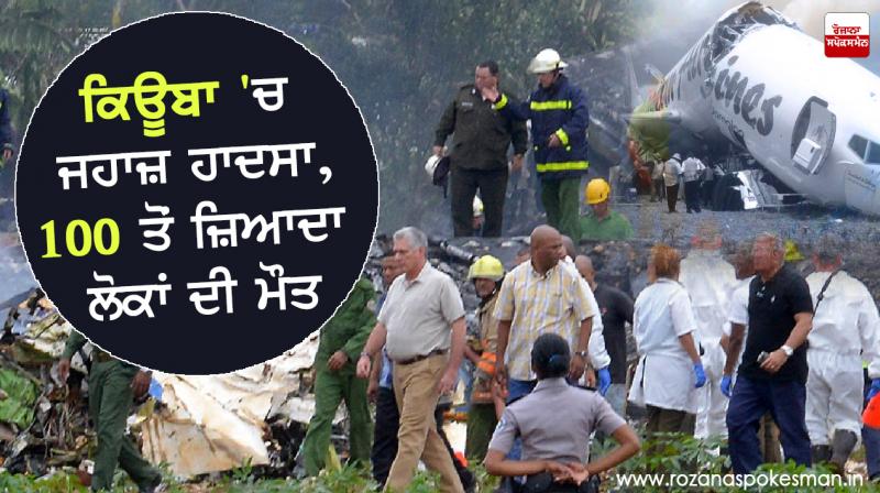 ਹਵਾਨਾ : ਕਿਊਬਾ ਦੇ ਸਰਕਾਰੀ ਏਅਰਵੇਜ ਦਾ ਇਕ ਜਹਾਜ਼ ਸ਼ੁਕਰਵਾਰ ਨੂੰ ਉਡਾਨ ਭਰਨ ਦੇ ਕੁੱਝ ਹੀ ਦੇਰ ਬਾਅਦ ਹਾਦਸੇ ਦਾ ਸ਼ਿਕਾਰ ਹੋ ਗਿਆ। ਮਿਲੀ ਜਾਣਕਾਰੀ ਅਨੁਸਾਰ ਹਾਦਸੇ ਦੇ ਸਮੇਂ ਇਸ ਜਹਾਜ਼ ਵਿਚ 104 ਯਾਤਰੀ ਸਵਾਰ ਸਨ ਅਤੇ ਇਸ ਦੁਰਘਟਨਾ ਵਿਚ 100 ਤੋਂ ਜ਼ਿਆਦਾ ਮੁਸਾਫ਼ਰਾਂ ਦੀ ਮੌਤ ਹੋ ਗਈ ਹੈ।