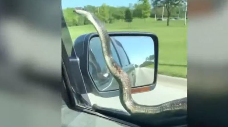 ਕੰਸਾਸ : ਜ਼ਰਾ ਸੋਚੋ ਜੇਕਰ ਤੁਸੀਂ ਅਪਣੀ ਗੱਡੀ ਰਾਹੀਂ ਕਿਤੇ ਜਾ ਰਹੇ ਹੋ ਅਤੇ ਅਚਾਨਕ ਇਕ ਵੱਡਾ ਤੇ ਜ਼ਹਿਰੀਲਾ ਸੱਪ ਤੁਹਾਡੀ ਗੱਡੀ ਦੇ ਉਪਰ ਆ ਜਾਵੇ ਤੇ ਤੁਹਾਨੂੰ ਡੱਸਣ ਦੀ ਕੋਸ਼ਿਸ਼ ਕਰਨ ਲੱਗੇ ਤਾਂ ਤੁਸੀਂ ਕੀ ਕਰੋਗੇ? ਅਜਿਹੀ ਹੀ ਇਕ ਘਟਨਾ ਅਮਰੀਕਾ ਦੇ ਕੰਸਾਸ ਵਿਚ ਵਾਪਰੀ ਜਿੱਥੇ ਕ੍ਰਿਸ ਹੈਂਡਰਸਨ ਅਪਣੀ ਗੱਡੀ ਰਾਹੀਂ ਕਿਤੇ ਜਾ ਰਹੇ ਸੀ ਉਦੋਂ ਹੀ ਇਕ ਜ਼ਹਿਰੀਲਾ ਸੱਪ ਉਡ ਕੇ ਗੱਡੀ 'ਤੇ ਆ ਡਿੱਗਿਆ।
