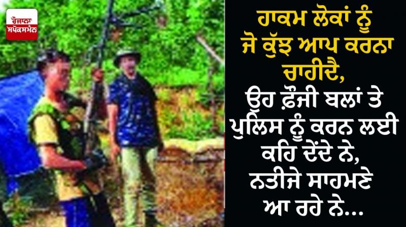 ਉਪਰੋਕਤ ਨੀਤੀ ਅਧੀਨ ਪੰਜਾਬ ਅਤੇ ਕਸ਼ਮੀਰ ਵਿਚ ਫ਼ੌਜੀ ਬਲਾਂ ਨੇ ਉਹ ਕੁੱਝ ਕੀਤਾ ਜੋ ਲੋਕ ਰਾਜੀ ਦੇਸ਼ਾਂ ਵਿਚ ਪ੍ਰਵਾਨ ਨਹੀਂ ਕੀਤਾ ਜਾਂਦਾ ਅਤੇ ਹੁਣ ਨਾਰਥ ਈਸਟ ਰਾਜਾਂ ਵਿਚ ਕਬਾਇਲੀਆਂ (ਈਸਾਈਆਂ) ਦਾ ਪ੍ਰਸ਼ਨ ਵੀ ਲੰਮੇ ਸਮੇਂ ਤੋਂ ਫ਼ੌਜੀ ਬਲਾਂ ਦੇ ਆਸਰੇ ਹੀ ਗੱਲ ਕਰਨ ਦੀ ਕੋਸ਼ਿਸ਼ ਦਾ ਨਤੀਜਾ ਇਹ ਸਾਹਮਣੇ ਆ ਰਿਹਾ ਹੈ ਕਿ ਮਨੀਪੁਰ ਵਿਚ ਚੰਦਰਪੁਰ ਦੇ ਨੇੜੇ ‘ਟਾਈਗਰ ਕੈਂਪ’ ਲਗਣੇ ਸ਼ੁਰੂ ਹੋ ਗਏ ਹਨ ਜਿਥੇ ਆਮ ਲੋਕ ‘ਡੀਫ਼ੈਂਸ ਵਾਲੰਟੀਅਰ’ ਬਣ ਕੇ ਹਥਿਆਰਬੰਦ ਹੋਣ ਲੱਗ ਪਏ ਹਨ ਕਿਉਂਕਿ ਉਹ ਸਮਝਦੇ ਹਨ ਕਿ ਸਰਕਾਰ ਨੂੰ ਉਨ੍ਹਾਂ ਨਾਲ ਕੋਈ ਹਮਦਰਦੀ ਨਹੀਂ। ਇਸ ਨਾਲ ਹਿੰਸਾ ਵੱਧ ਸਕਦੀ ਹੈ ਅਤੇ ਹਾਲਾਤ ਵਿਗੜ ਸਕਦੇ ਹਨ ਪਰ ਦਿੱਲੀ ਦੇ ਹਾਕਮਾਂ ਨੂੰ ਅਪਣੀ ਫ਼ੌਜੀ ਸ਼ਕਤੀ ਤੇ ਜ਼ਿਆਦਾ ਭਰੋਸਾ ਹੈ ਅਤੇ ਆਪ ਕੁੱਝ ਕਰਨ ਦੀ ਚਿੰਤਾ ਨਹੀਂ ਵਿਖਾ ਰਹੇ। ਰੱਬ ਬਚਾਏ ਇਸ ਦੇਸ਼ ਨੂੰ ਅਤੇ ਇਸ ਦਾ ਲੋਕ ਰਾਜ ਨੂੰ!!