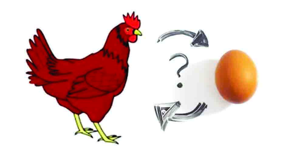 ਇਹ ਮੁਰਗੀ ਪਹਿਲਾਂ ਜਾਂ ਅੰਡਾ ਪਹਿਲਾਂ ਵਾਲੀ ਸਥਿਤੀ ਬਣ ਗਈ ਹੈ ਕਿ ਪਹਿਲਾਂ ਭਾਸ਼ਾ ਵਿਚ